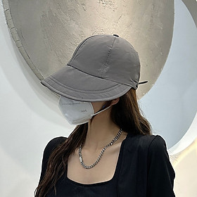 -Mũ chống nắng Hàn Quốc, Nón vành rộng có móc đeo khẩu trang, chất liệu vải Acrylic khô nhanh thoáng mát cho ngày Hè