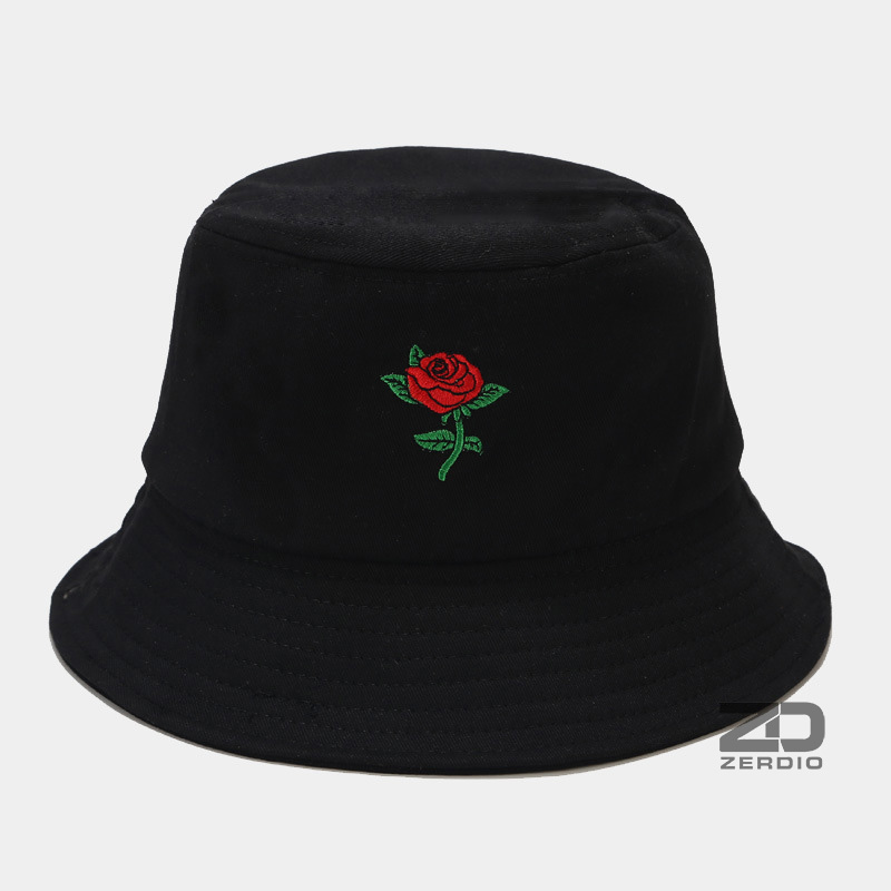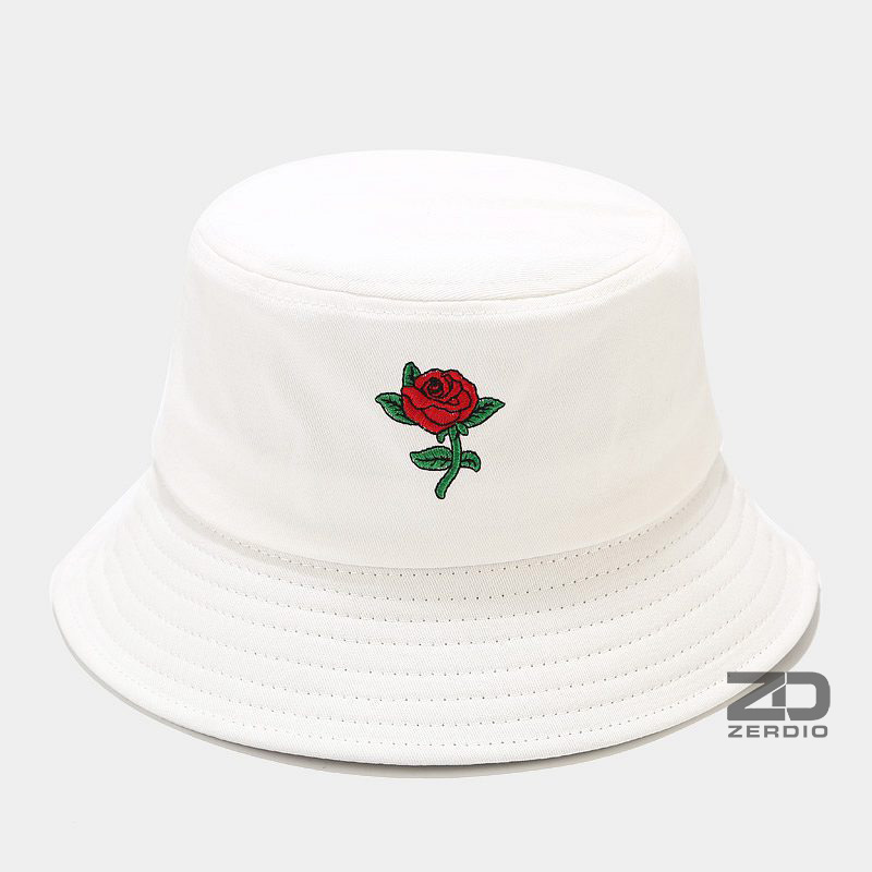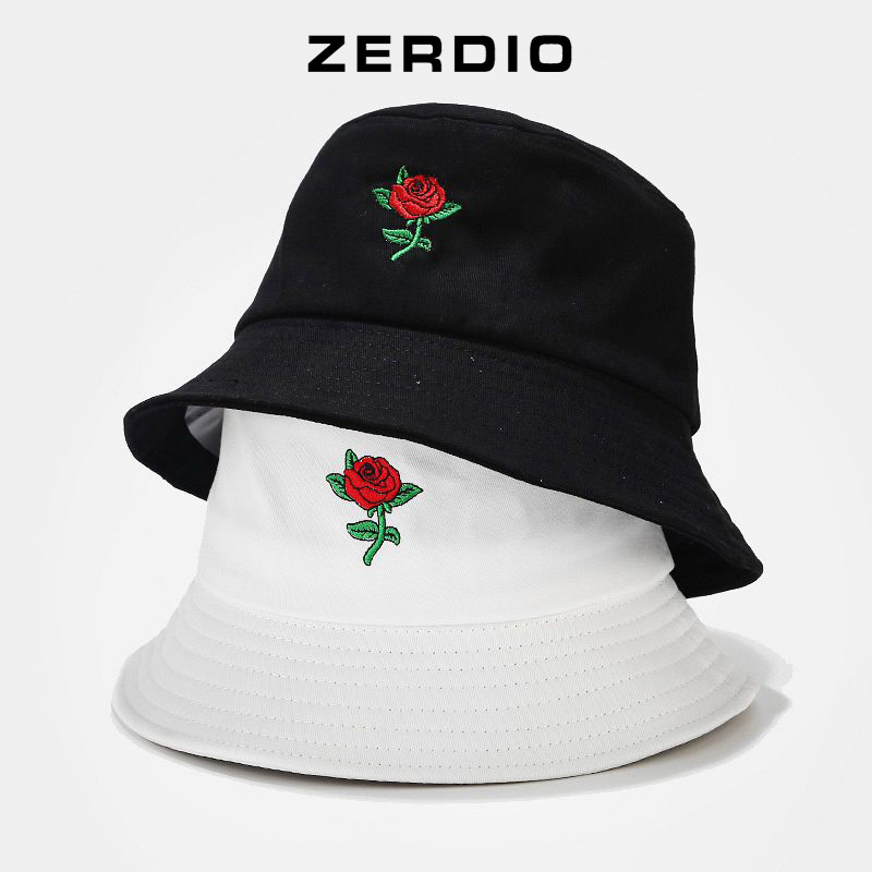 Mũ vành tròn, Nón tai bèo bucket thêu đóa hoa hồng vải cotton cao cấp cho cả nam và nữ - ZERDIO