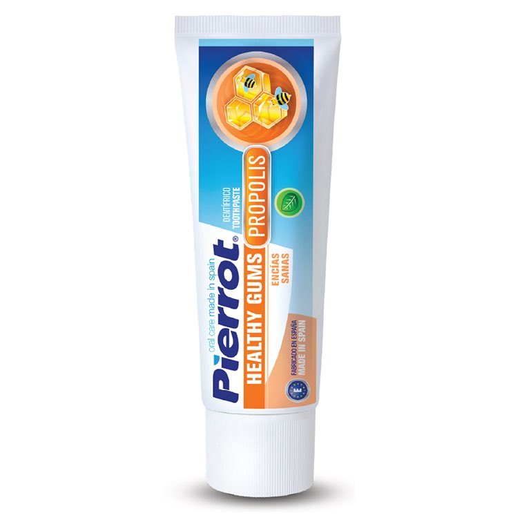 Kem đánh răng keo ong cho nướu chắc khỏe Pierrot là kem đánh răng chứa keo ong có tác dụng duy trì nướu khỏe mạnh cho răng miệng thơm tho suốt cả ngày. Chiết xuất keo ong giúp ngăn ngừa chảy máu nướu. Chiết xuất hoa cúc có khả năng kháng khuẩn ngăn ngừa viêm, sưng nưới. Fluoride ngăn ngừa tình trạng mảng bám ích tụ và chống sâu răng hiệu quả. Sản phẩm không chứa Paraben an toàn cho người sử dụng Thành phần: Aqua, Sorbitol, Hydrated Silica, Glycerin, PEG-12, Propolis Extract, Aroma, Cocamidopropyl Betaine, Cellulose Gum, Titanium Dioxide, Allantoin, Sodium Fluoride, Potassium Sorbate, Sodium Saccharin, Chamomilla Recutita Extract, Citric Acid, Sodium Benzoate, CI 47005, CI 16035, CI 42090, Cinnamal. Hướng dẫn sử dụng: Làm ướt bàn chải. Lấy một lượng kem vừa đủ cho lên bàn chải rồi đánh răng. Súc miệng lại thật sạch với nước. Bảo quản: Nơi khô ráo, thoáng mát. Tránh ánh nắng trực tiếp, nơi có nhiệt độ cao hoặc ẩm ướt. Đậy nắp kín sau khi sử dụng. Xuất xứ: Tây Ban Nha