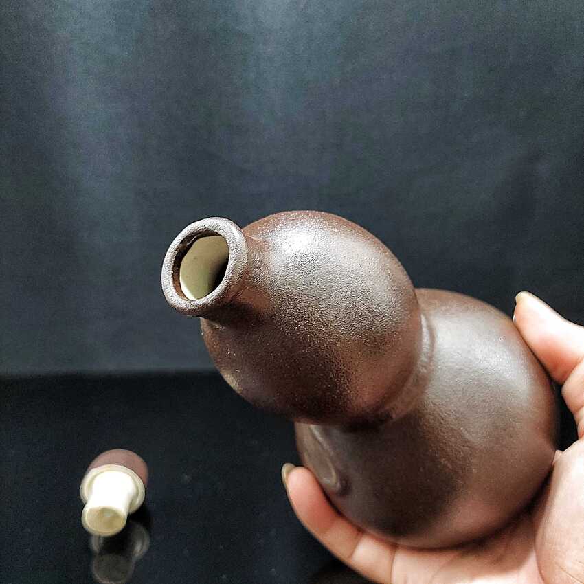 Nậm Rượu Gốm 500ML cao cấp mẫu hồ lô nghiêng màu nâu đất Nậm Đựng Rượu cho giới sành tửu – Nậm Rượu Đẹp (L4) Terracotta Bottle 500ML - Lean Gourd shape – Brown color