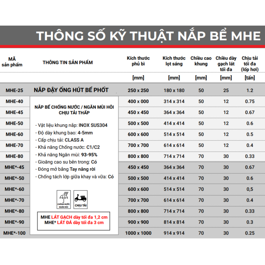 ✨Nắp bể ngầm chống nước ngăn mùi inox ZAVAK MHE*-80 / KT 80x80cm, lát gạch 3cm, tải 330kg