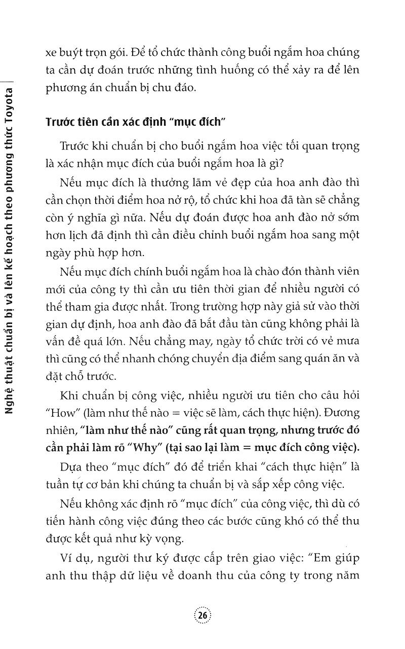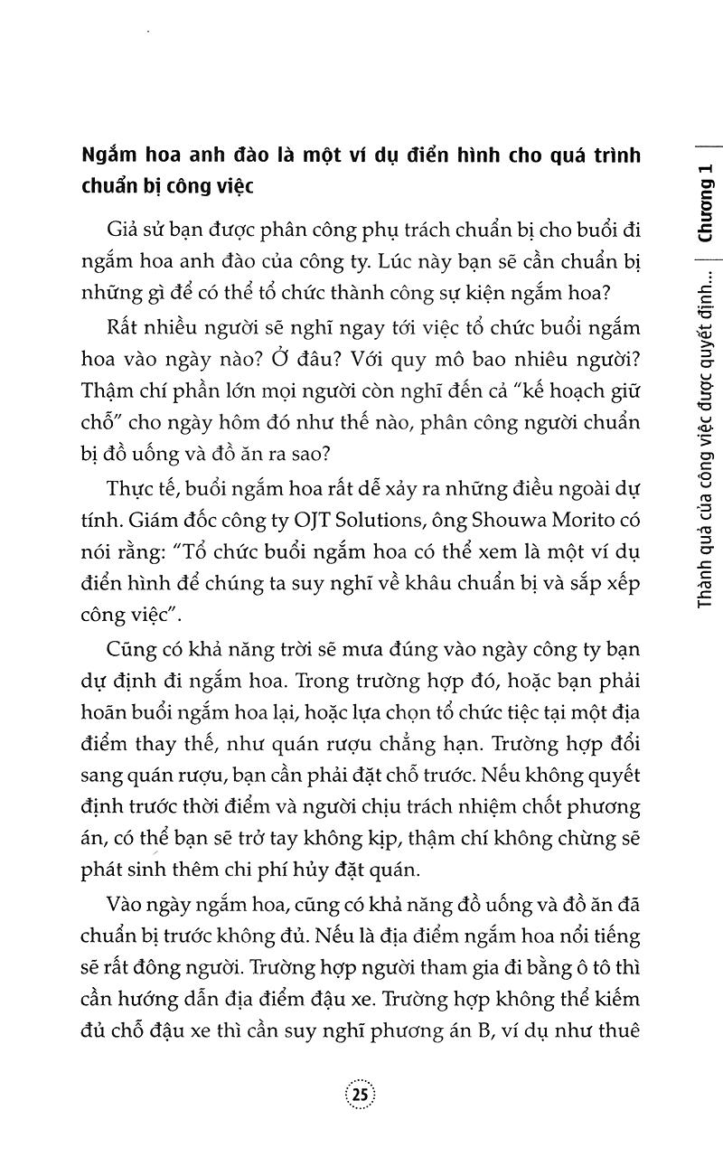 Chuẩn bị công việc không phải là phương pháp chỉ để hoàn thành sớm công việc mà là những know-how (bí quyết) vừa giúp nâng cao tốc độ, vừa duy trì chất lượng của công việc, từ đó nâng cao thành quả đạt được.