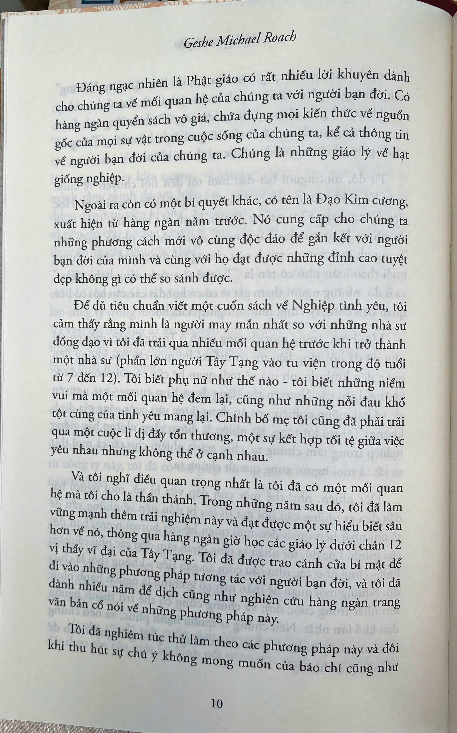 Cách Geshe Michael Roach "luận về tình yêu" dựa trên tinh thần triết học Tây Tạng cổ đại, như một chiếc chìa khóa đa năng có thể mở ra những ô cửa tình yêu đôi lứa cũng như những ô cửa khác về những mối quan hệ khác. Vì đơn giản, bản thể của tất cả các mối quan hệ trong cuộc sống là TÌNH YÊU THƯƠNG.