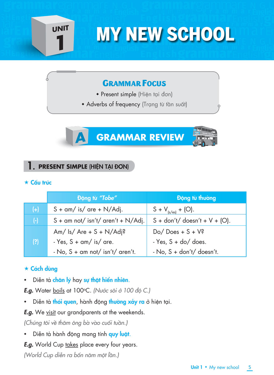- Tổng hợp đầy đủ, rõ ràng kiến thức ngữ pháp bám sát theo chương trình học - Nội dung kiến thức bám sát theo chương trình học của Bộ giáo dục và Đào tạo, giúp các em nắm vững toàn bộ kiến thức đã học trên lớp, đồng thời làm quen với những nội dung kiến thức mới, mửo rộng và nâng cao, hỗ trợ quá trình tự học tiếng anh hiệu quả.