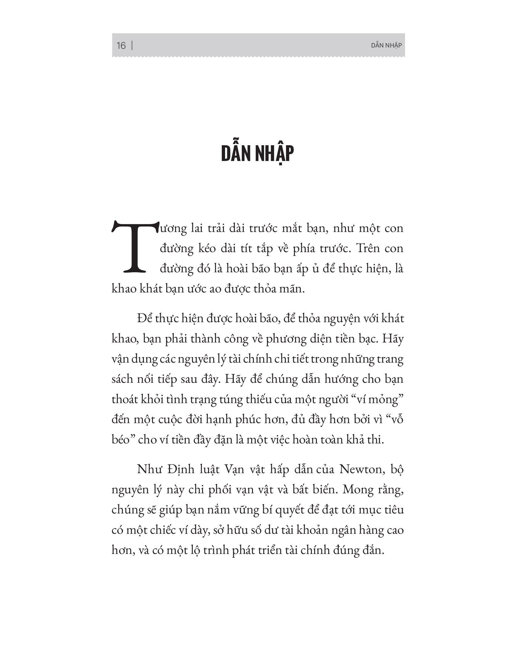 Hãy để cuốn sách này dẫn lối bạn thoát khỏi tình trạng túng thiếu của một người “ví mỏng” đến một cuộc đời hạnh phúc hơn, đủ đầy hơn bởi vì “vỗ béo” cho ví tiền đầy đặn là một việc hoàn toàn khả thi.