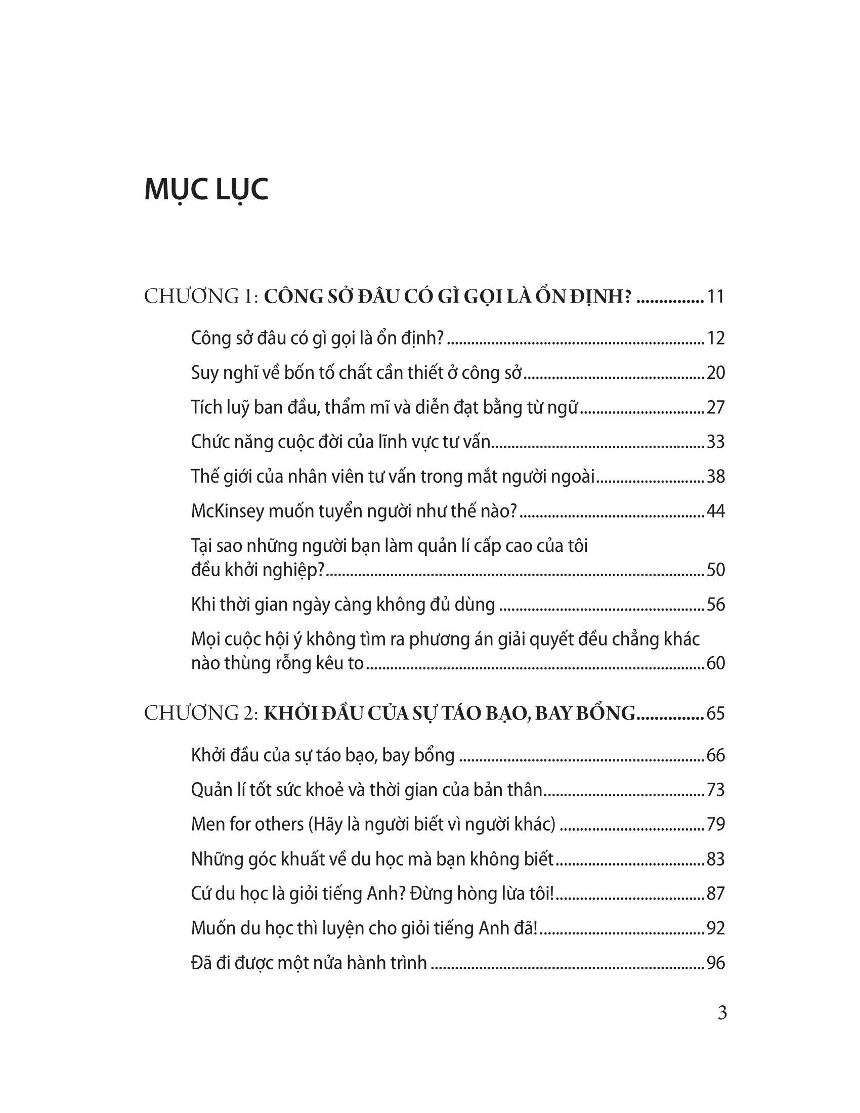 Hành trình của tác giả Trần Lập Phi là hành trình "chuyển đổi đường đua của cuộc đời". Khi đọc cuốn sách này, bạn sẽ phải tự đặt ra câu hỏi rằng liệu tương lai "ổn định", êm ả không chút bất ngờ có phải tương mà bản thân mong muốn hay không. Bạn sẽ phải làm việc với bản thân, giữa một bên truyền thống là theo đuổi sự yên ổn, thế giới ngoài kia hiểm ác và đầy những điều bất trắc; còn nửa còn lại thì thúc giục bạn trải nghiệm và khám phá nhiều hơn, đừng quá "ổn định" mà kìm hãm chính bản thân m.ình.