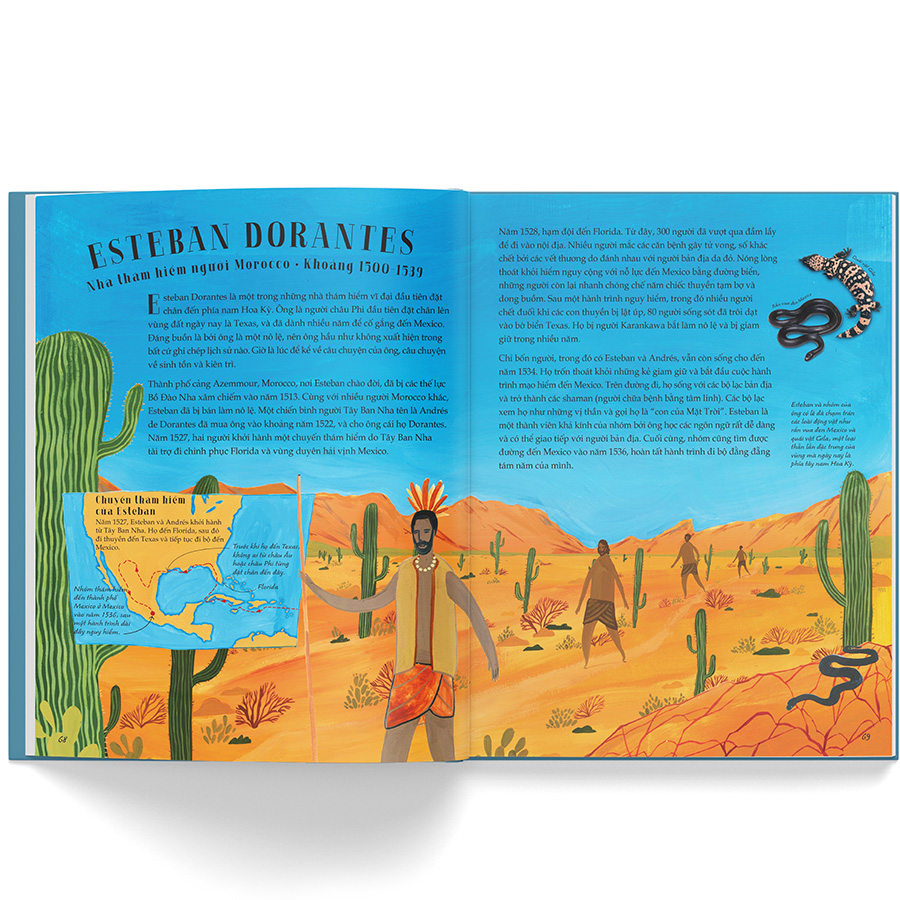 Nhà thám hiểm kể những câu chuyện đáng kinh ngạc về hơn 50 nhà du hành. Hãy gặp gỡ Vasco de Gama, người đầu tiên đi từ châu u đến Ấn Độ bằng đường biển; Nellie Bly, nữ phóng viên đi vòng quanh thế giới trong 72 ngày; và Barbara Hillary, người đã đặt chân đến Bắc Cực ở tuổi 75!