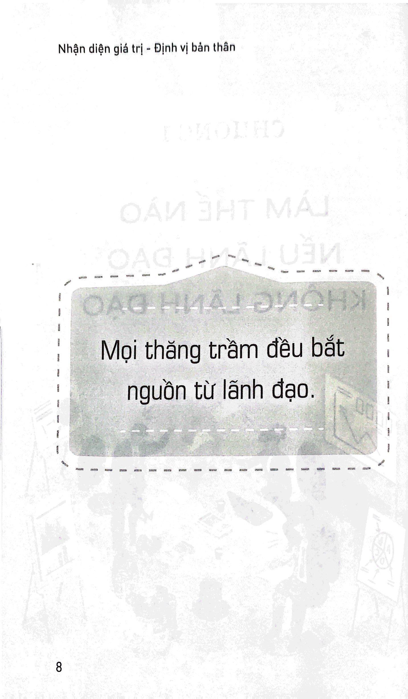 Cuốn sách « Nhận diện giá trị - Định vị bản thân » tiếp cận chủ đề lãnh đạo theo một cách hoàn toàn khác. Lãnh đạo không nằm ở vị trí mà ở vị thế và thái độ. Bạn không cần phải là Chủ tịch hoặc Trưởng phòng mới được gọi là người lãnh đạo và chứng minh khả năng lãnh đạo hiệu quả. Bạn có thể tạo ra tác động tích cực thông qua việc tự lãnh đạo bản thân dù bạn đang ở vị trí nào.