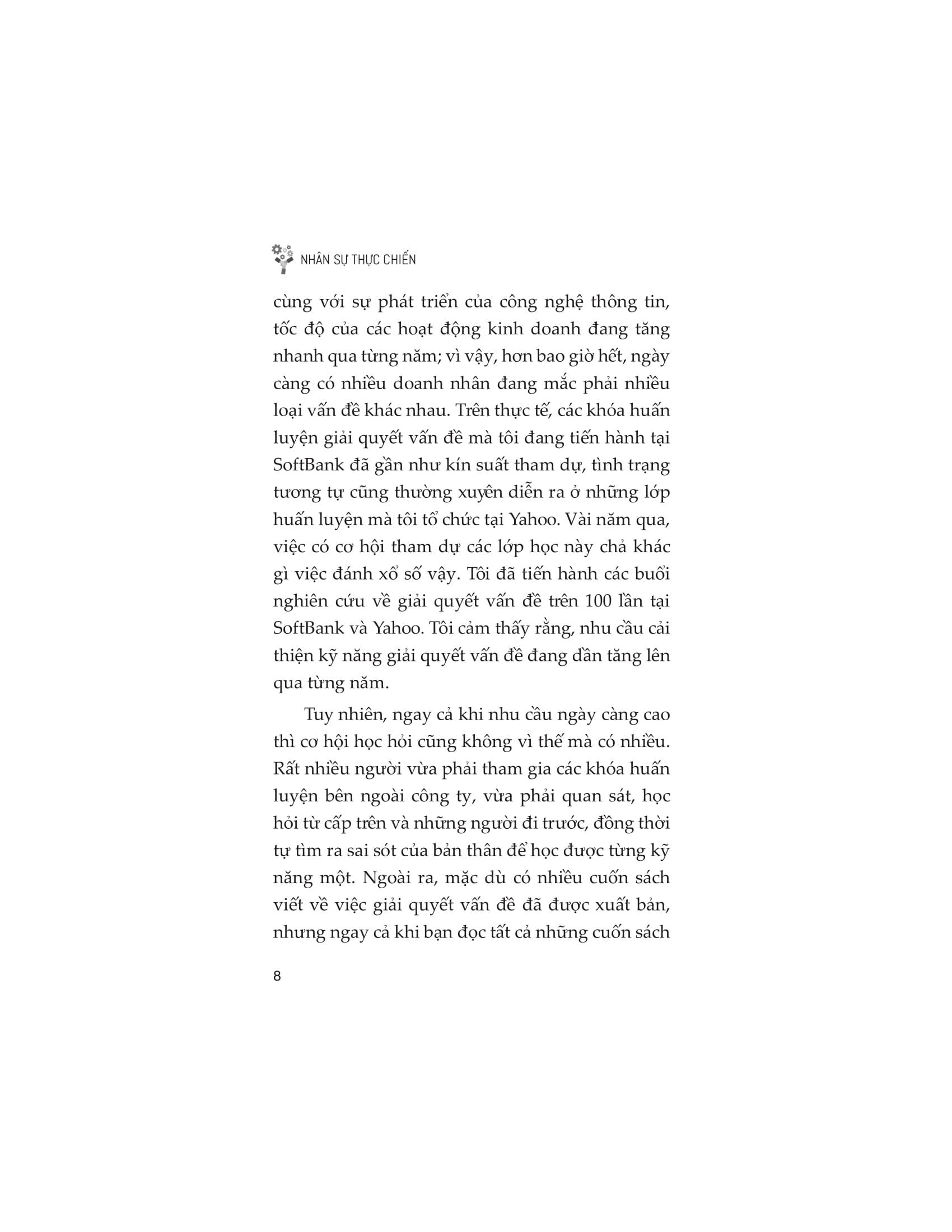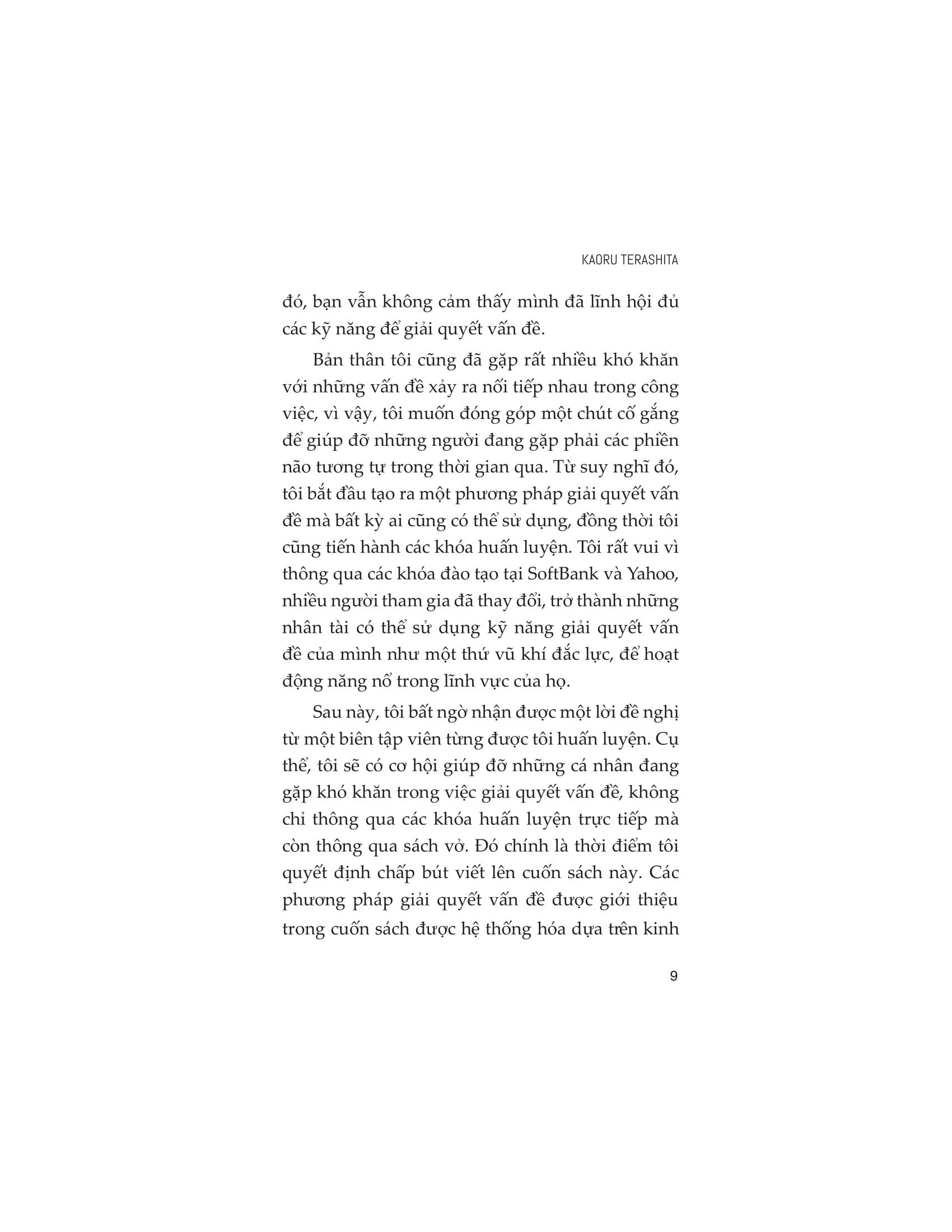 Kaoru Terashita làm việc tại Yahoo Nhật Bản từ năm 2013, với nhiệm vụ chủ yếu là phát triển nguồn nhân lực tại công ty. Ông liên tục tổ chức các lớp huấn luyện tại Yahoo và SoftBank về kỹ năng giải quyết vấn đề, với đông đảo học viên là những nhà quản lý đến từ các công ty thuộc nhiều lĩnh vực đa dạng như chứng khoán, ngân hàng, mỹ phẩm, viễn thông, may mặc...