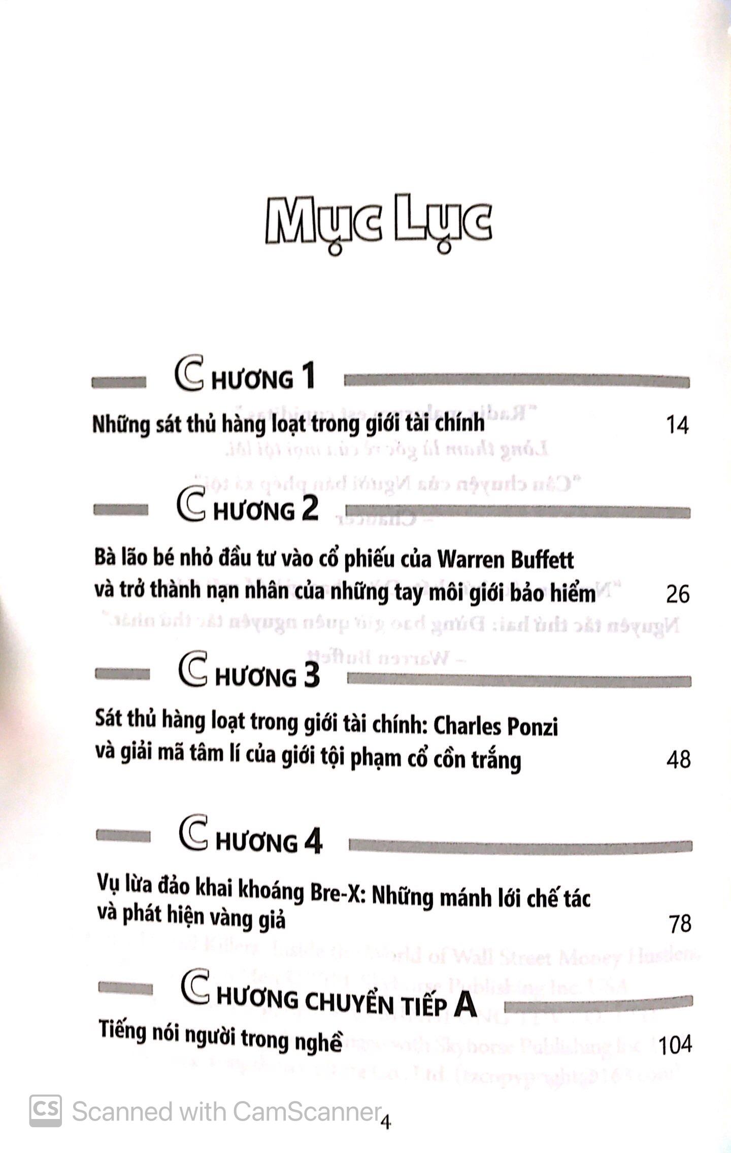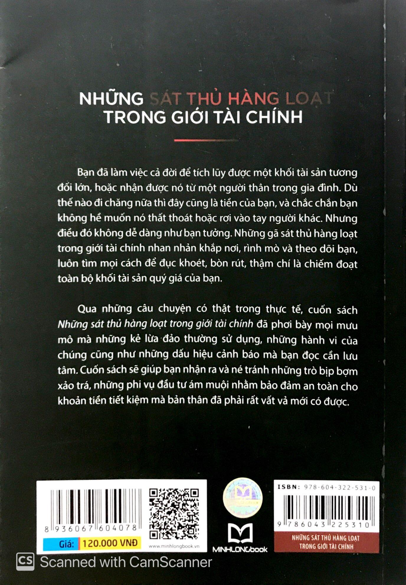 Qua những câu chuyện có thật trong thực tế, cuốn sách Những sát thủ hàng loạt trong giới tài chính đã phơi bày mọi mưu mô mà những kẻ lừa đảo thường sử dụng, những hành vi của chúng cũng như những dấu hiệu cảnh báo mà bạn đọc cần lưu tâm. Cuốn sách sẽ giúp bạn nhận ra và né tránh những trò bịp bợm, xảo trá, những phi vụ đầu tư ám muội nhằm bảo đảm an toàn cho khoản tiền tiết kiệm mà bản thân đã phải rất vất vả mới có được.