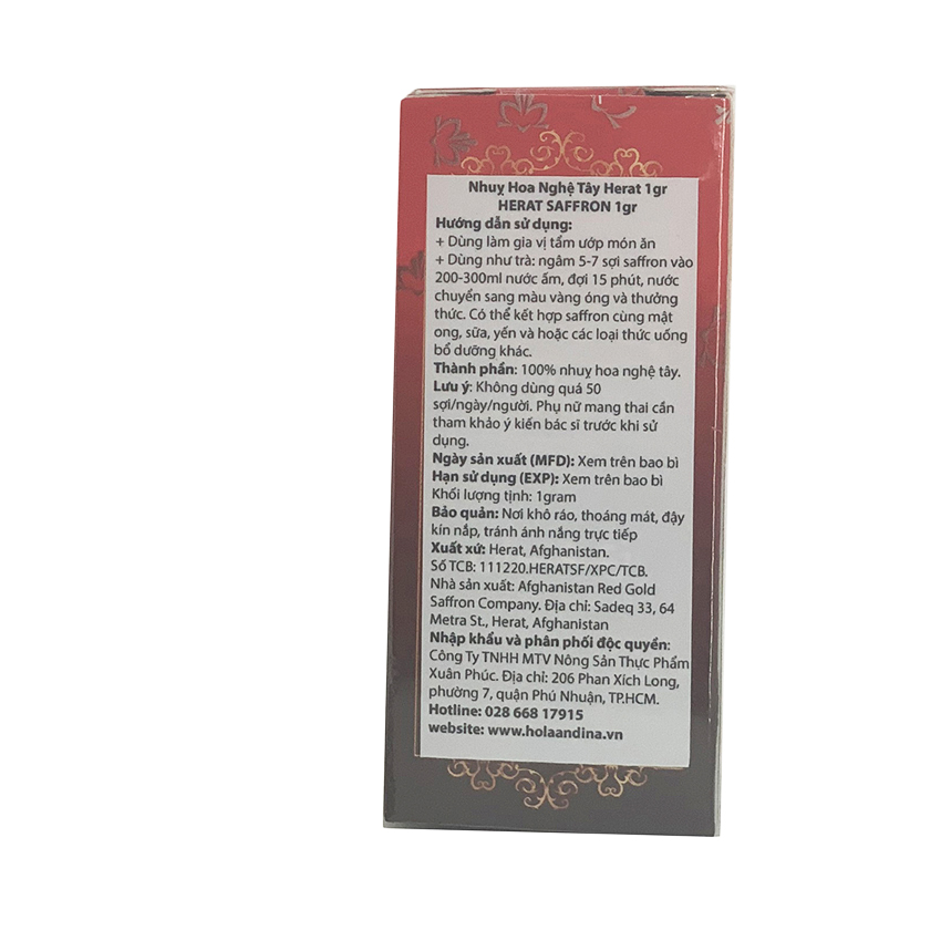 - Nhuỵ hoa nghệ tây thương hiệu HERAT thu hoạch trực tiếp từ các cánh đồng hoa nghệ tây tại tỉnh Herat- Afghanistan, chỉ cung cấp những sợi nghệ tây thượng hạng, nguyên chất, được chọn lựa kỹ càng bằng tay.