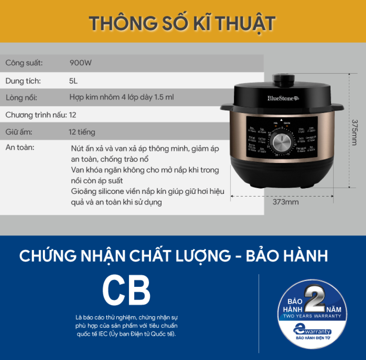 Review Nồi Áp Suất Điện Tử BlueStone PCB-5748, 900W-5Lit, Bảo Hành Chính Hãng 2 Năm
