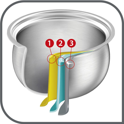 Nồi áp suất cao cấp Hannover. Nồi được thiết kế 2 tay cầm ngắn và 1 tay cầm dài chắc chắn và an toàn khi sử dụng Nồi cấu trúc đáy 3 lớp theo phương