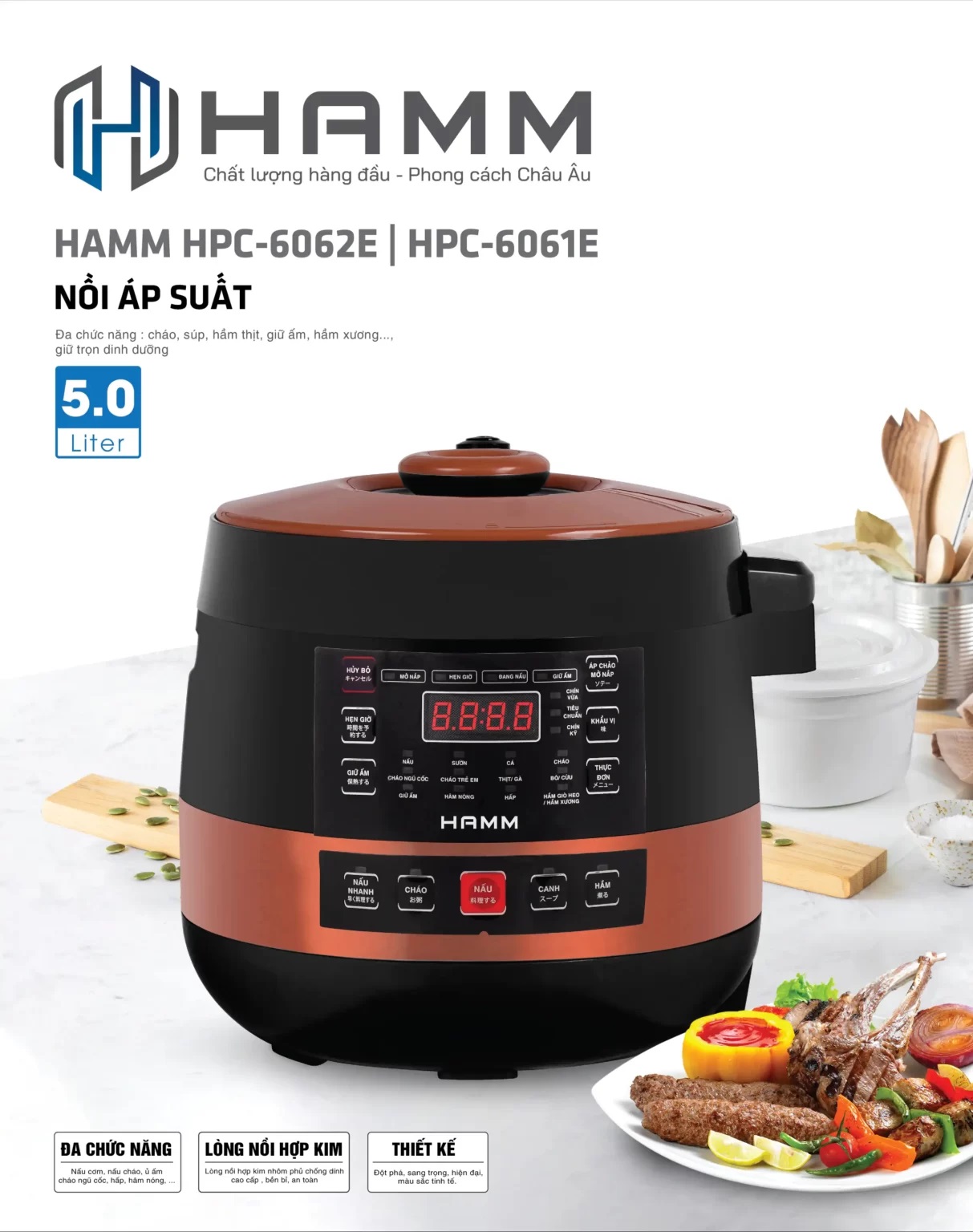 ✨Nồi Áp Suất Điện Tử HAMM HPC-6062E (5 lít) - Hàng Chính Hãng