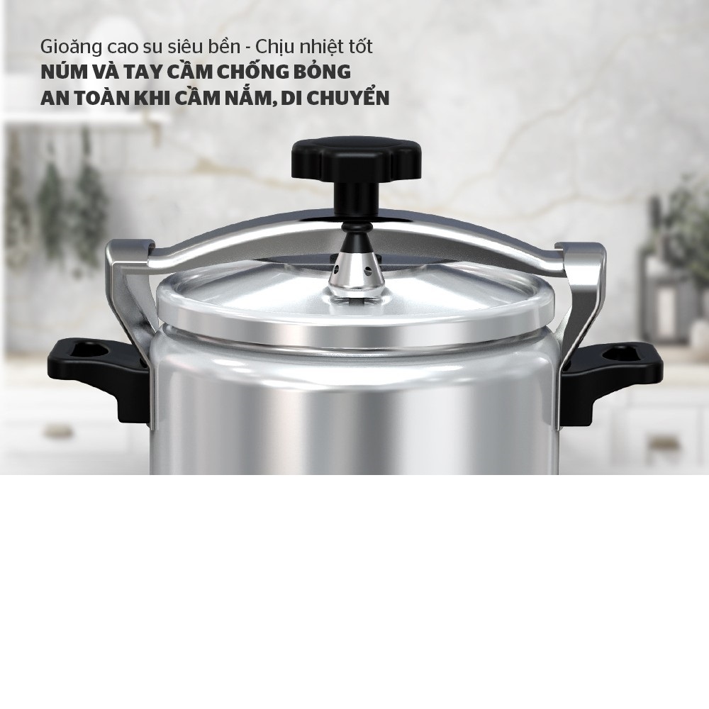 - An toàn, bền đẹp trong suốt quá trình sử dụng Sản phẩm được trang bị van xả 3 cấp độ và van an toàn, tự động xả áp khi áp suất trong nồi vượt quá mức cho phép, đảm bảo an toàn cho người sử dụng. Ngoài ra, với chất liệu nhôm cao cấp, sản phẩm có độ bền vượt trội, hạn chế trầy xước, sáng bóng, bền đẹp với thời gian.