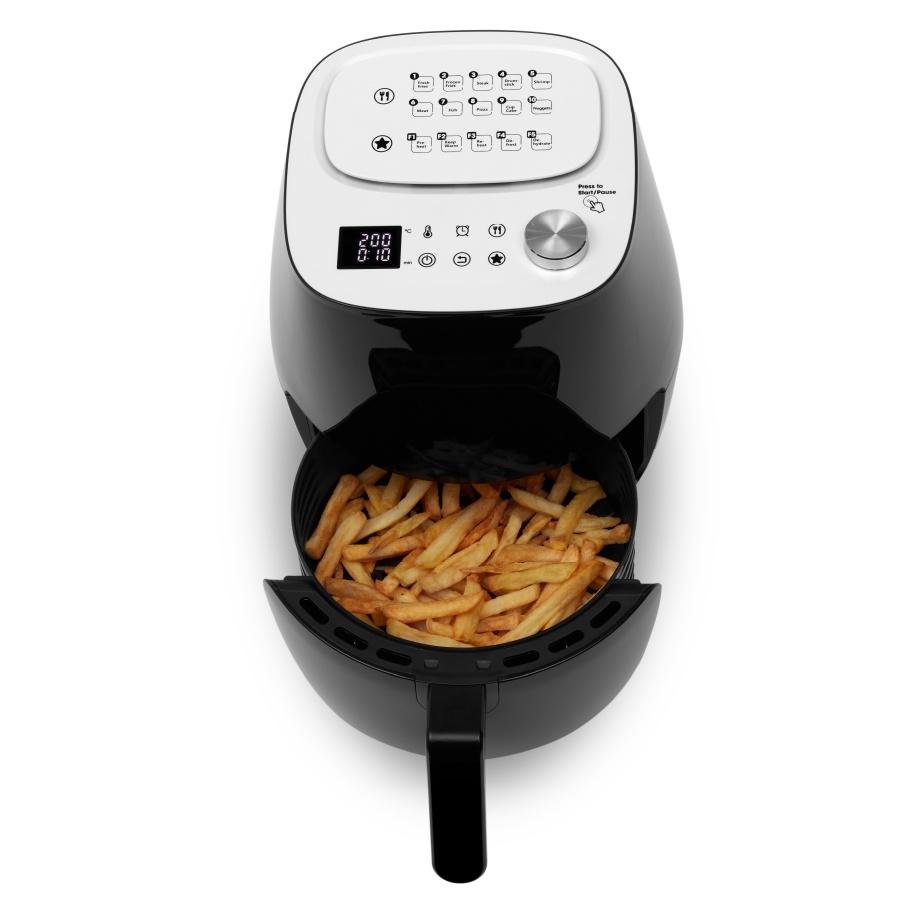 Nồi chiên không dầu đa chức năng, cảm ứng màn hình LED hiện đại – Nồi chiên không dầu Kalite Q6 được thiết kế với bảng điều khiển điện tử hiện đại được setup sẵn