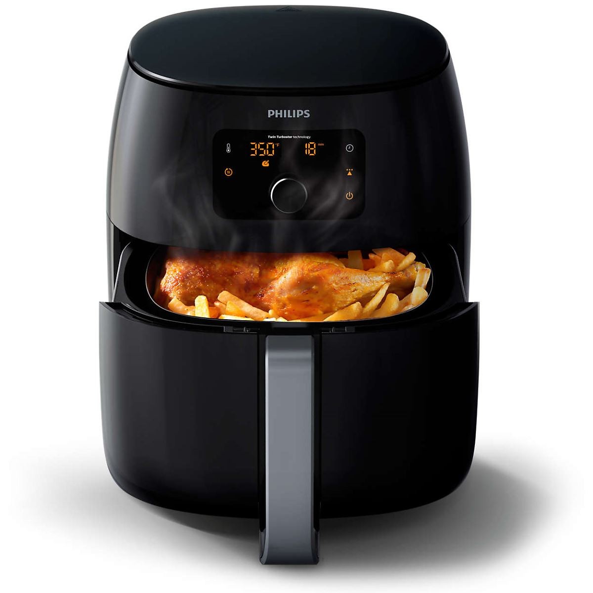• Dung tích: Tổng 7.3L, khoang lồng 3.5 Lít - Sức chưa: 1,4Kg - Vĩ kèm theo: 2 vĩ rời - Bảng điều khiển: Điện tử - Núm vặn: QuickControl - Dãy nhiệt độ: 200 độ C - Công suất tiêu thụ: 2225W - Điện áp: 220V, 50-60Hz - Chức năng:  +Hâm :30 Phút  +Chiên được cài đặt sẵn      +Chiên thực phẩm đông lạnh khoai tây  +Chiên thịt rút xương  +Chiên cá nguyên con <500g  +Chiên nướng bánh - QuickClean (Làm sạch Nhanh) - Chất liệu      +Thân máy: Nhựa cao cấp  +Lồng nồi: Chống dính  +Vĩ chiên: Chống dính  +Khay hứng mỡ: Nhựa - Vỏ máy cách nhiệt - Chân đế chống trượt - Công nghệ Twin TurboStar - Công nghệ Rapid Air
