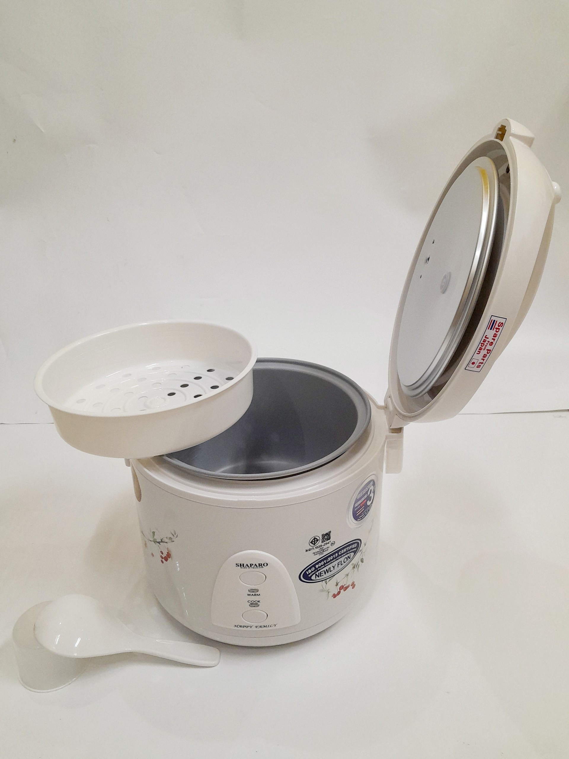 Mua tại Tiktok- Nồi cơm điện hiệu Shaparo Lồng nồi tráng men chống dính Vỏ nồi thiết kế hoa văn sang trọng Dung tích 1.8L Màu sắc: trắng Thùng 4 cái Linh kiện của Nhật Bản * Sản xuất tại Thái Lan
