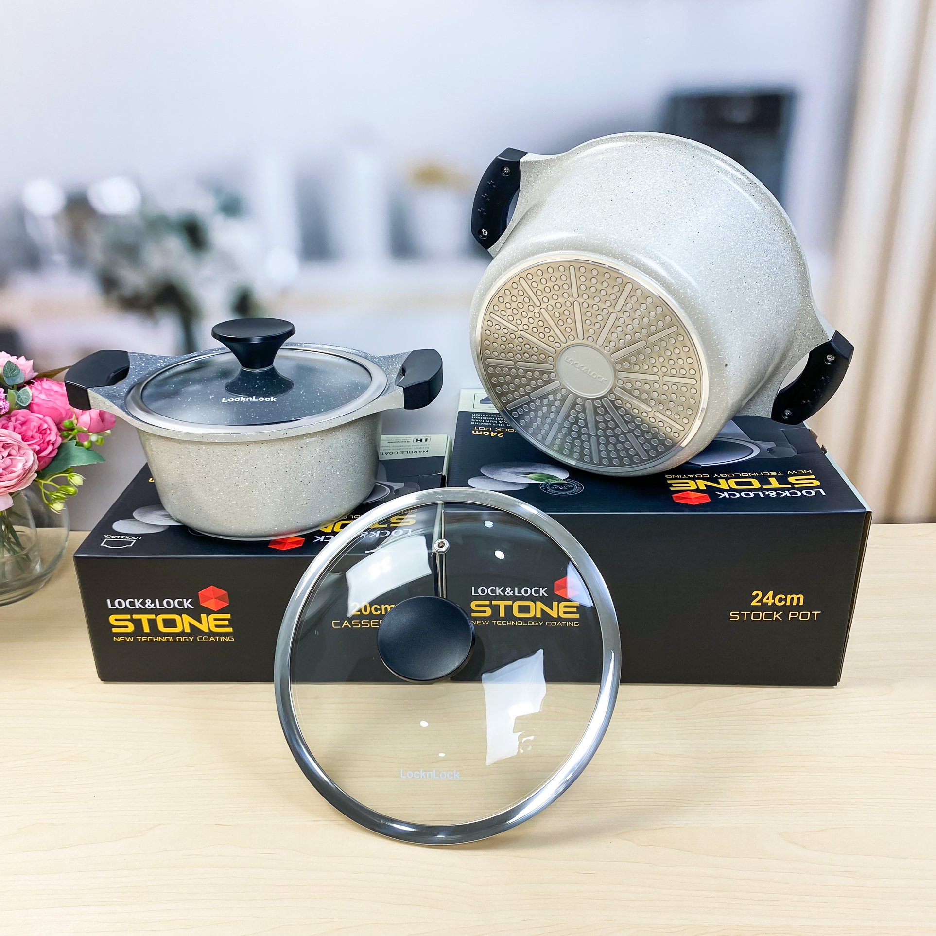 Nồi Đá Cao Cấp Lock&Lock Stone LCA6202D 20cm / LCA6244D 24cm / LCA6181D 18cm