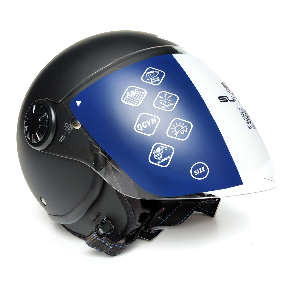 Mũ bảo hiểm nửa đầu có kính Sunda 180B tem là phụ kiện không thể thiếu khi đi xe mô tô, xe máy, mang lại sự an toàn và phong cách thời trang cho người sử