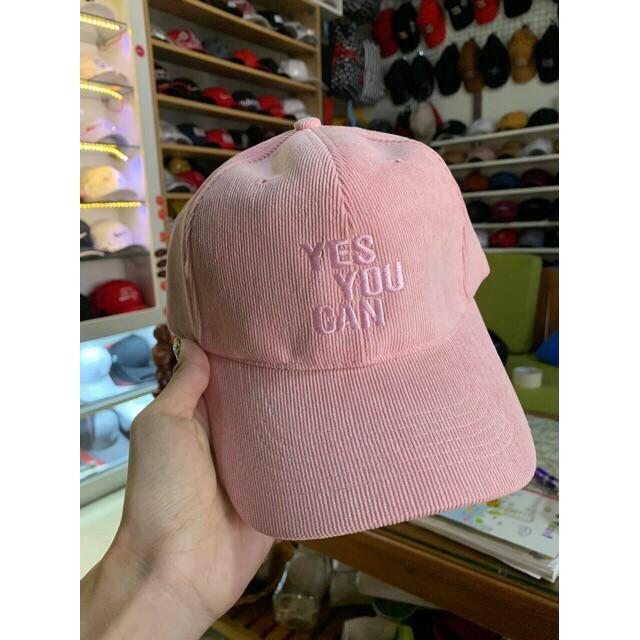 Nón kết vải nhung Yes You Can được may từ chất liệu vải nhung mềm mượt, tạo cảm giác thoải mái dễ chịu khi sử dụng. Các đường may chắc chắn tạo sự bền chắc