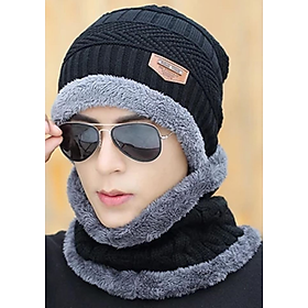 PVN55244 Mũ len cho nam kèm khăn choàng cổ mùa đông giữ ấm tốt