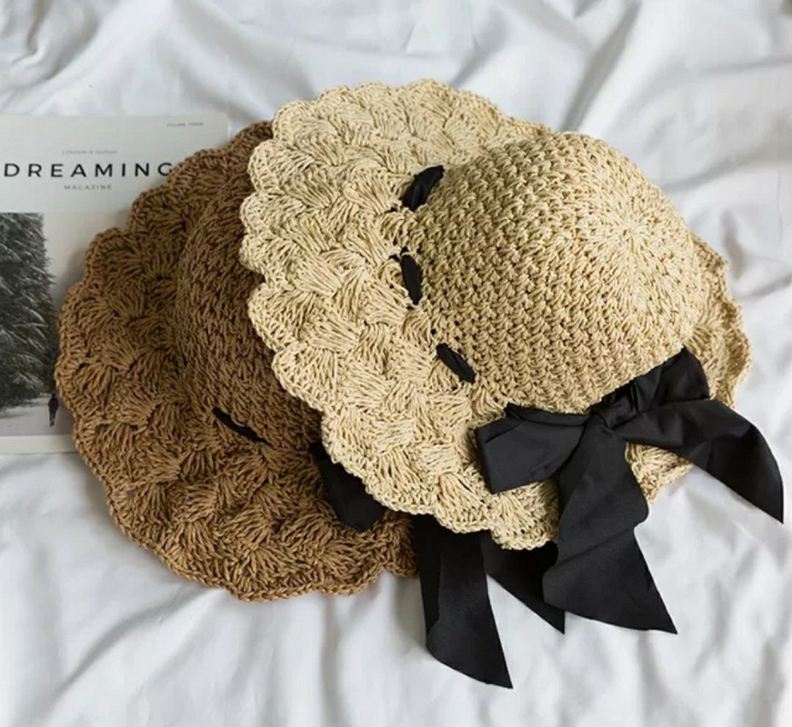 Nón mũ Nữ cói Dệt Móc Tay thoáng khí Có Thể Gập Đi Biển