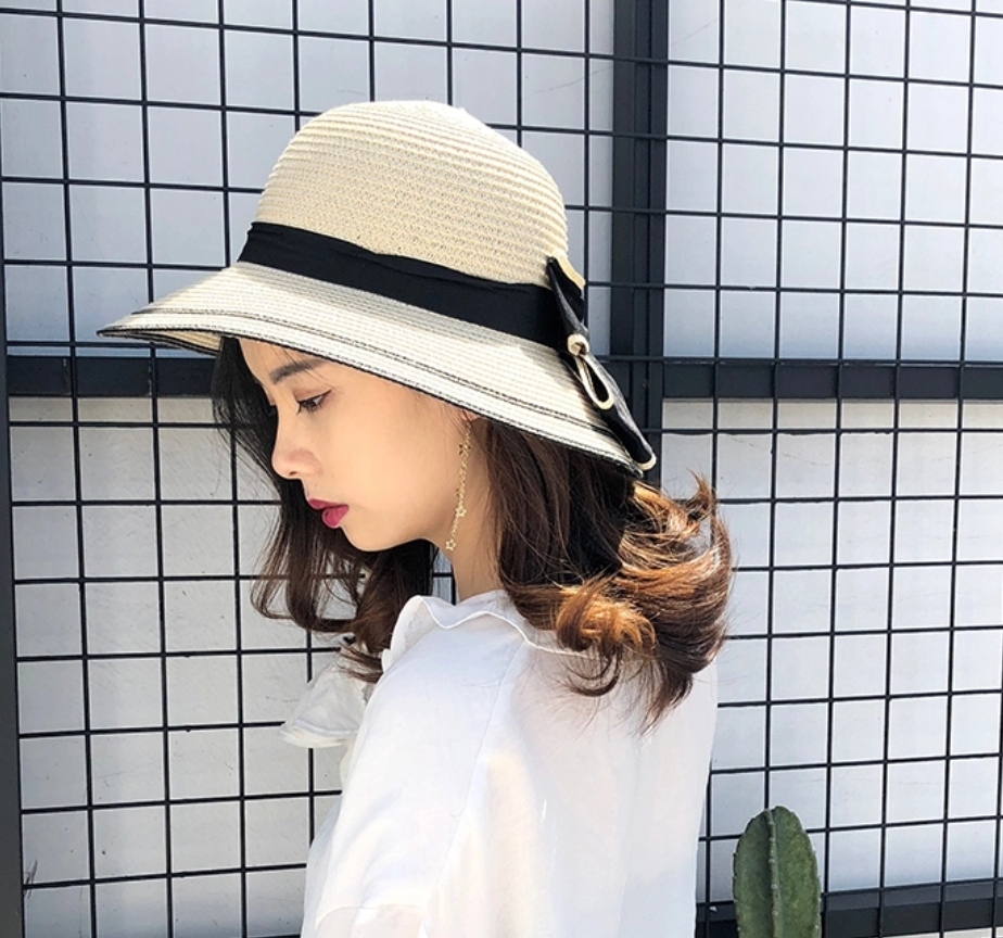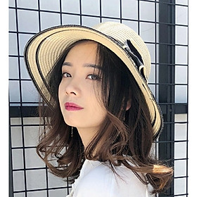 Mũ cói rơm vành phẳng nữ mùa hè phiên bản Hàn Quốc chống nắng UV cho kỳ nghỉ Nón đi biển Paris thời trang hàng đầu Pháp Chất liệu cói