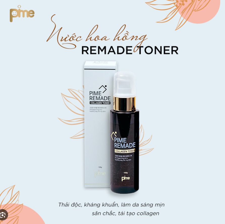 NƯỚC HOA HỒNG COLLAGEN PIME REMADE TONER Làm sạch sâu lỗ chân lông, giúp da thông thoáng se khít lỗ chân lôngvà hạn chế sự hình thành mụn.Giúp da dễ hấp thu dưỡng chất từ kem dưỡng da tốt hơn đồng thời ngăn ngừa mụn