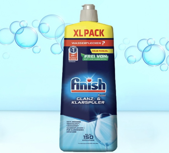 Các viện trợ rửa xong đảm bảo các món ăn rạng rỡ và khô. Nó tránh sự hình thành của cặn, giọt nước và màng đá vôi và không để lại gì ngoài ánh sáng rực rỡ.