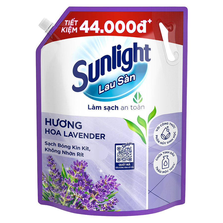 SUNLIGHT NƯỚC LAU SÀN TINH DẦU THẢO MỘC - HƯƠNG HOA LAVENDER - CHO SÀN SẠCH THƠM TINH TẾ Nước lau sàn Sunlight hương hoa Lavender mới, với tinh dầu Lavender 100% và mùi hương
