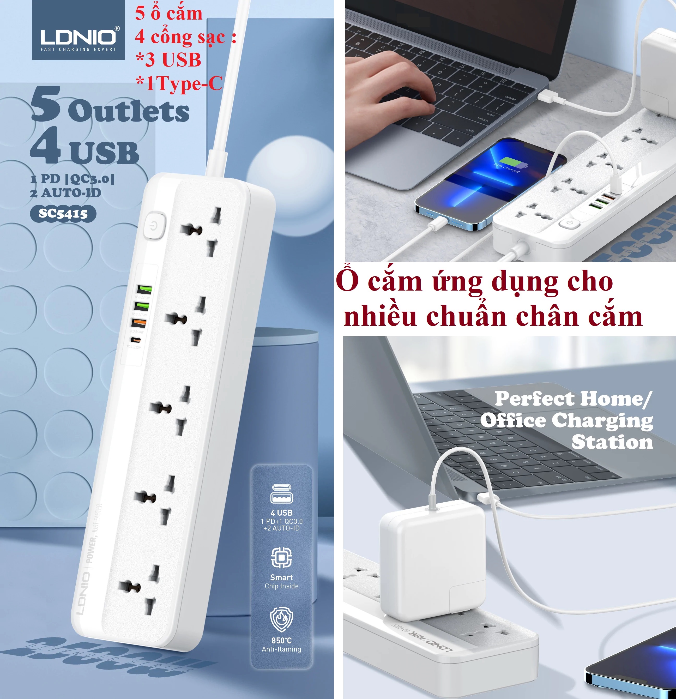 ✨Ổ cắm đa năng 2500W tích hợp sạc nhanh PD20W QC18W LDNIO SC5415 _ hàng chính hãng