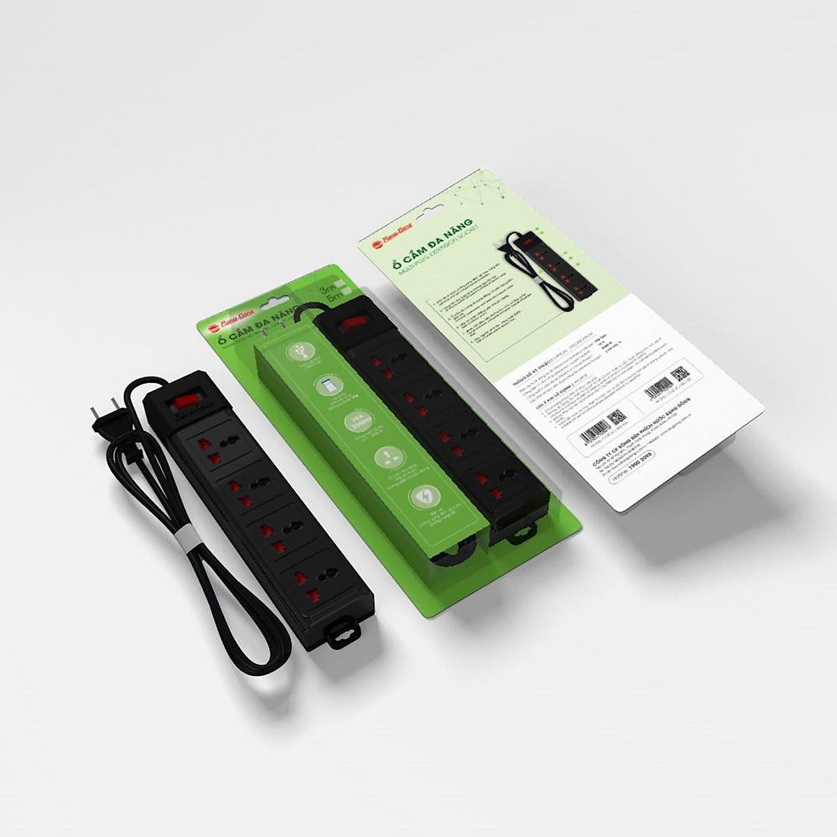 Loại: 4 ổ 3 chấu ( có nắp che) Chiều dài dây: 3 mét Màu sắc: Trắng và Đen Dây dẫn ĐỒNG NGUYÊN CHẤT, ĐÚNG TIẾT DIỆN 100%. Ổ cắm nối dài đa năng cao