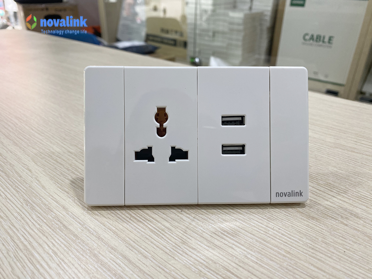 Hình ảnh sản phẩm ổ cắm USB âm tường kèm ổ điện A31-5 Novalink chính hãng