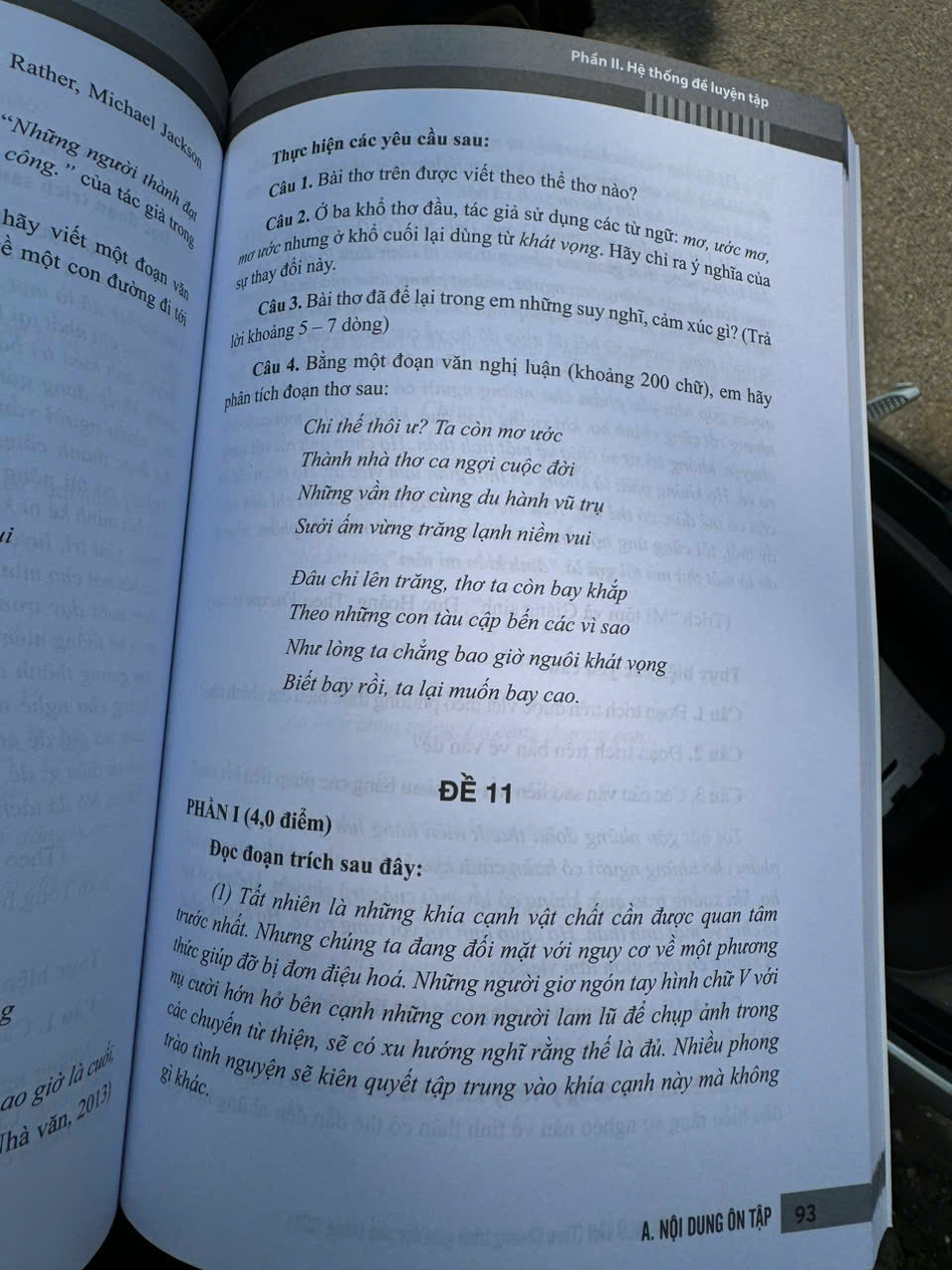 Trong phần này, chúng tôi xây dựng 9 chuyên đề nhằm giúp học sinh hệ thống hoá các kiến thức, kĩ năng đã học ở cấp trung học cơ sở, chủ yếu ở lớp 9, bao gồm: (1) Hệ thống hoá kiến thức tiếng Việt (để vận dụng vào đọc hiểu văn bản và viết đoạn văn, bài văn), (2) Đọc hiểu văn bản thơ, (3) Đọc hiểu văn bản truyện, (4) Đọc hiểu văn bản kí, (5) Đọc hiểu văn bản kịch, (6) Đọc hiểu văn bản nghị luận, (7) Đọc hiểu văn bản thông tin, (8) Viết văn nghị luận văn học; (9) Viết văn nghị luận xã hội.