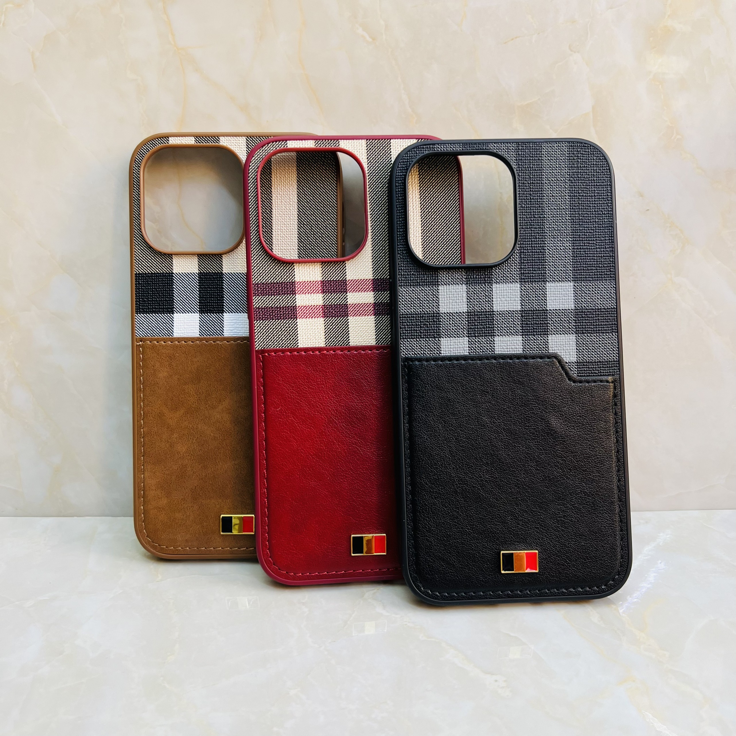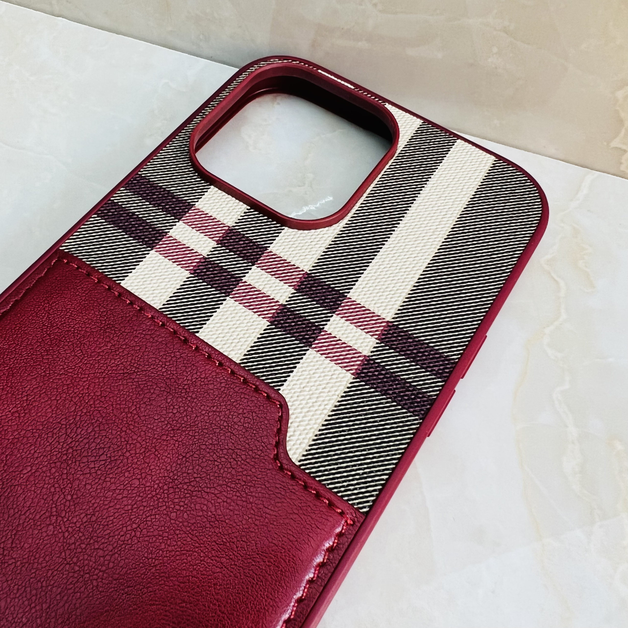 Ốp lưng iPhone 14 pro max Mentor VII được làm từ chất liệu da simili vân sọc caro nhiều màu.