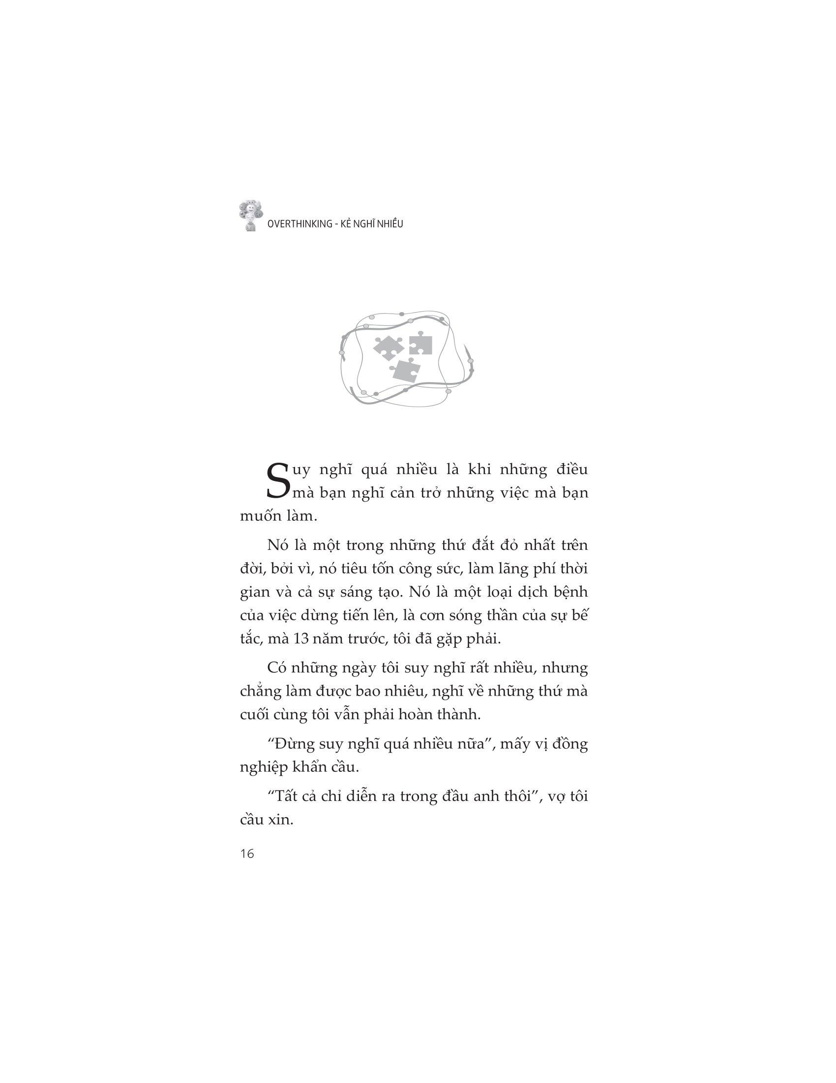 Overthinking là kẻ thù tệ hại nhất, giữ chân bạn trên con đường thực hiện những gì m.ình muốn. Nó là một trong những thứ đắt đỏ nhất trên đời, bởi vì, nó tiêu tốn công sức, làm lãng phí thời gian và cả sự sáng tạo. Đây chính xác là một loại dịch bệnh của việc dừng tiến lên, là cơn sóng thần của sự bế tắc.