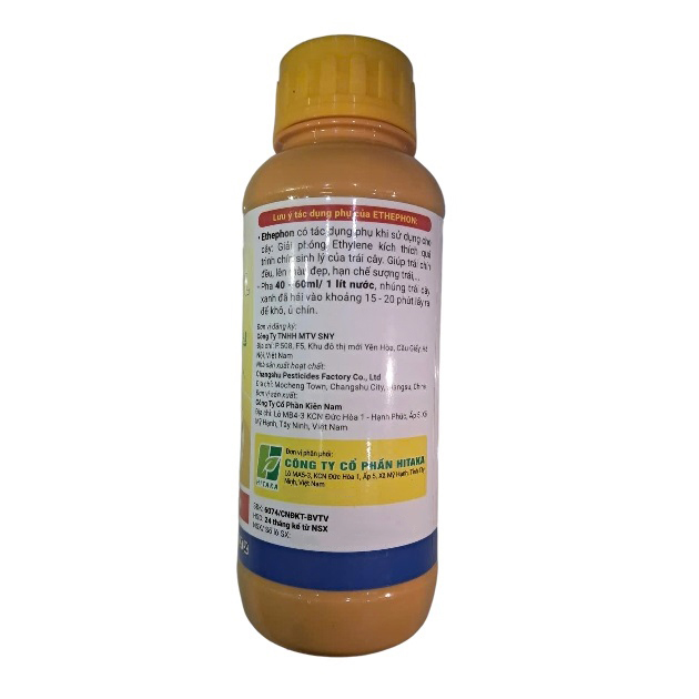 - Thành phần: Ethephon 40 g/l ; Phụ gia đặc biệt. pH: 4. Tỷ trọng: 1,1