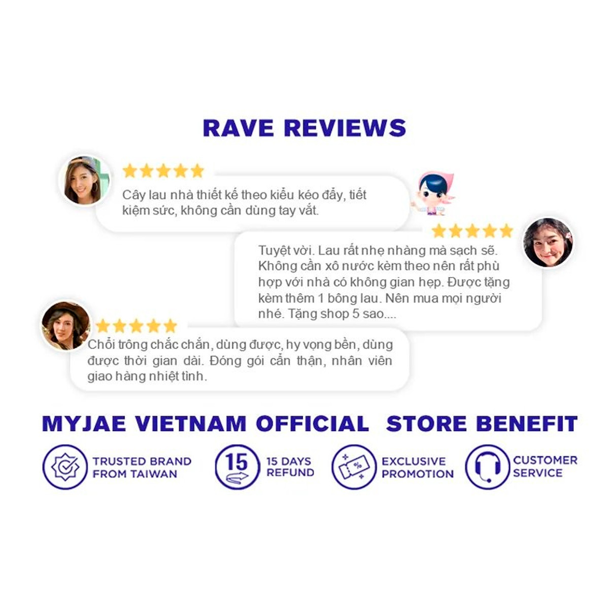 Cây lau MyJae 3 lần vắt 3 thanh gạt, phân ra ngăn khô và ngăn giặt 2 van xả nước, vệ sinh dễ dàng Thùng nhỏ gọn, cất giữ dễ dàng Cây lau MyJae 3