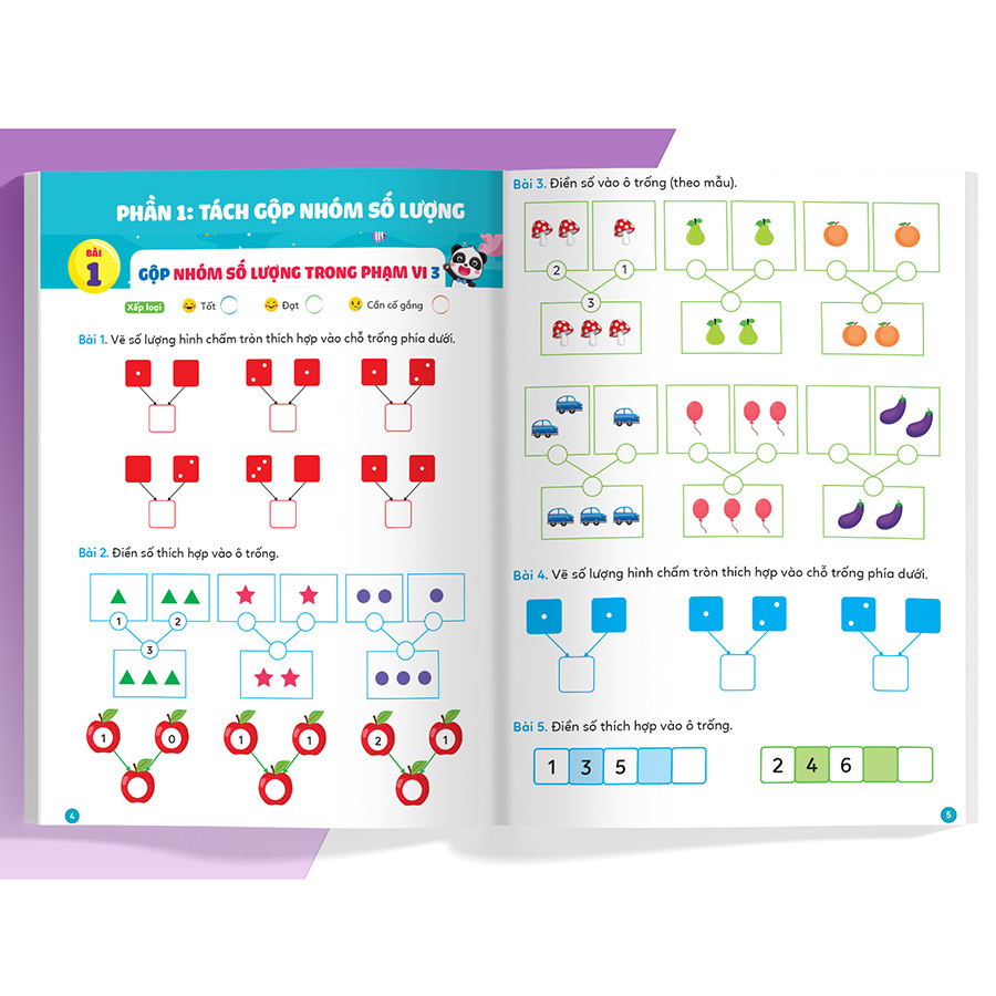[Review] Phiếu luyện toán tư duy cùng Gấu KiKi 4. Tách gộp nhóm số lượng - Làm quen với so sánh