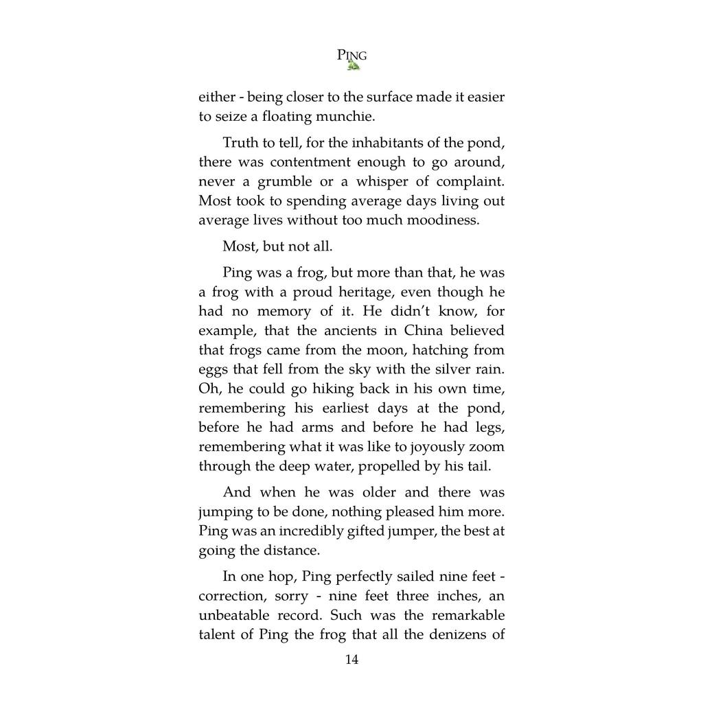 Mong rằng Ping – Vượt Ao Tù Ra Biển Lớn sẽ khơi nguồn cảm hứng và giúp bạn thực hiện một cú nhảy vọt bằng những khả năng tuyệt vời của chính bản thân mình. Khi bạn cầm quyển sách này trên tay, chứng tỏ rằng bạn đang mở rộng lòng mình trước những tiềm năng vô hạn của bản thâ