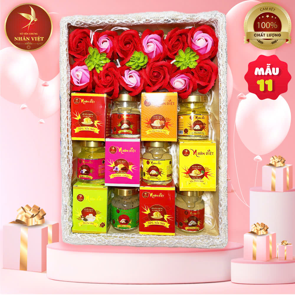 Hộp quà sang trọng: Hộp quà tặng yến sào NHÂN VIỆT được thiết kế đẹp mắt, sang trọng, thể hiện sự trân trọng của người tặng. Các hộp quà thường được làm từ chất liệu cao cấp, đi kèm với các phụ kiện như hoa, thiệp chúc mừng, tạo nên sự tinh tế và đẳng cấp.