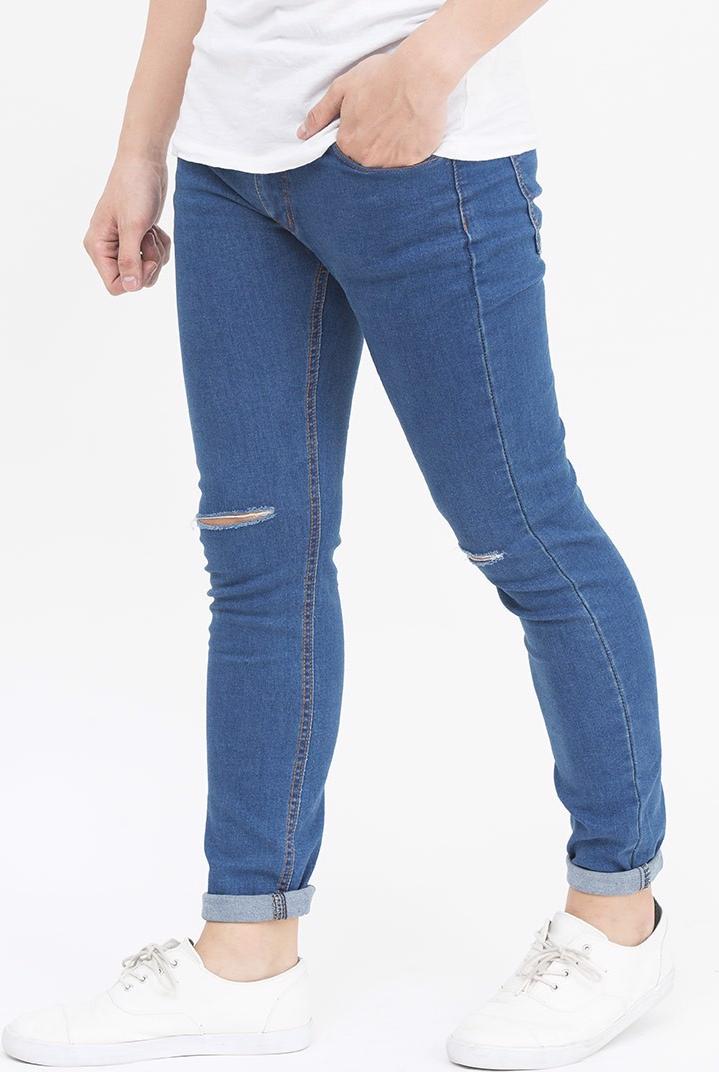 Quần Jeans Nam Rách Gối Dáng Skinny SZone SQB601 Quần Jeans được làm từ chất vải jean cotton mềm mịn, không bai gião, ít bị nhăn khi gập và rất ít bám bụi. Quần Jeans