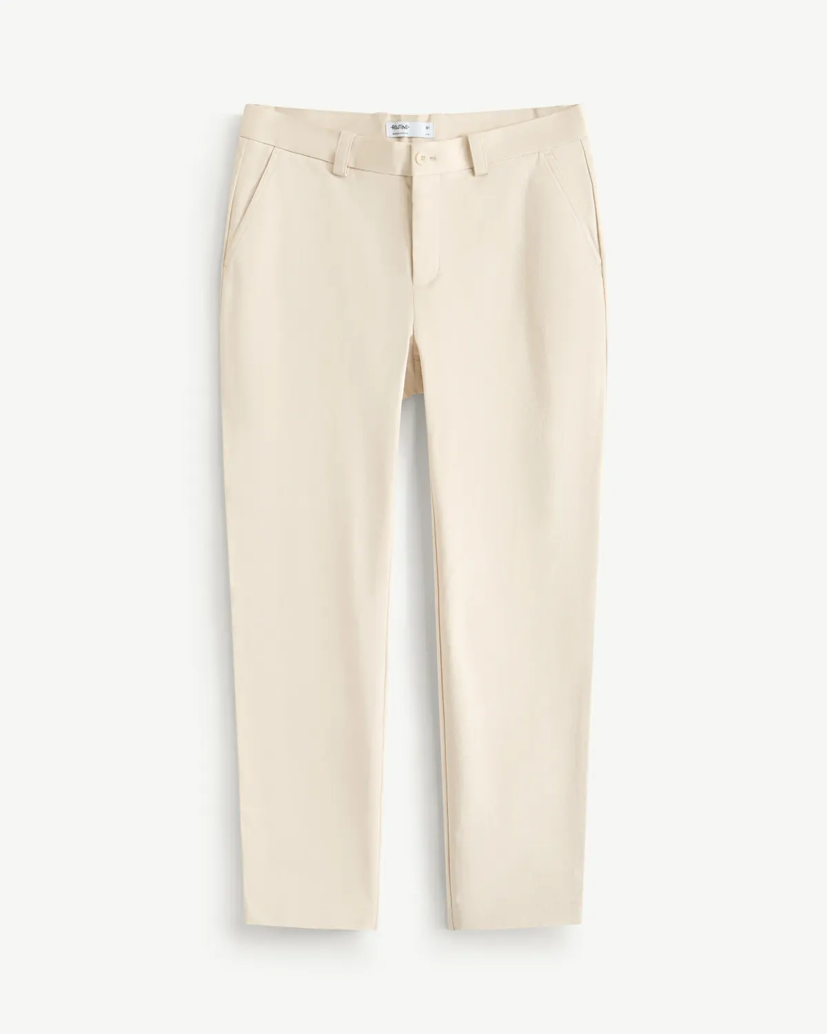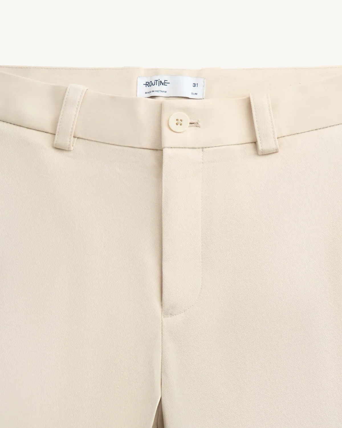Quần kaki nam đính nhãn kim loại Form Slim cropped - RT 10S25PCA002 | ROUTINE CÀ MAU Đặc điểm nổi bật Form : Slim cropped Fabric : Cotton Spandex Gender: Nam Collection: Essential 25 Sản