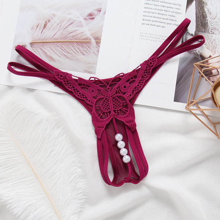 Quần lót lọt khe ren bướm xẻ đáy có hạt ngọc trai mã B519 #heesushop #thongs #lace #underwear