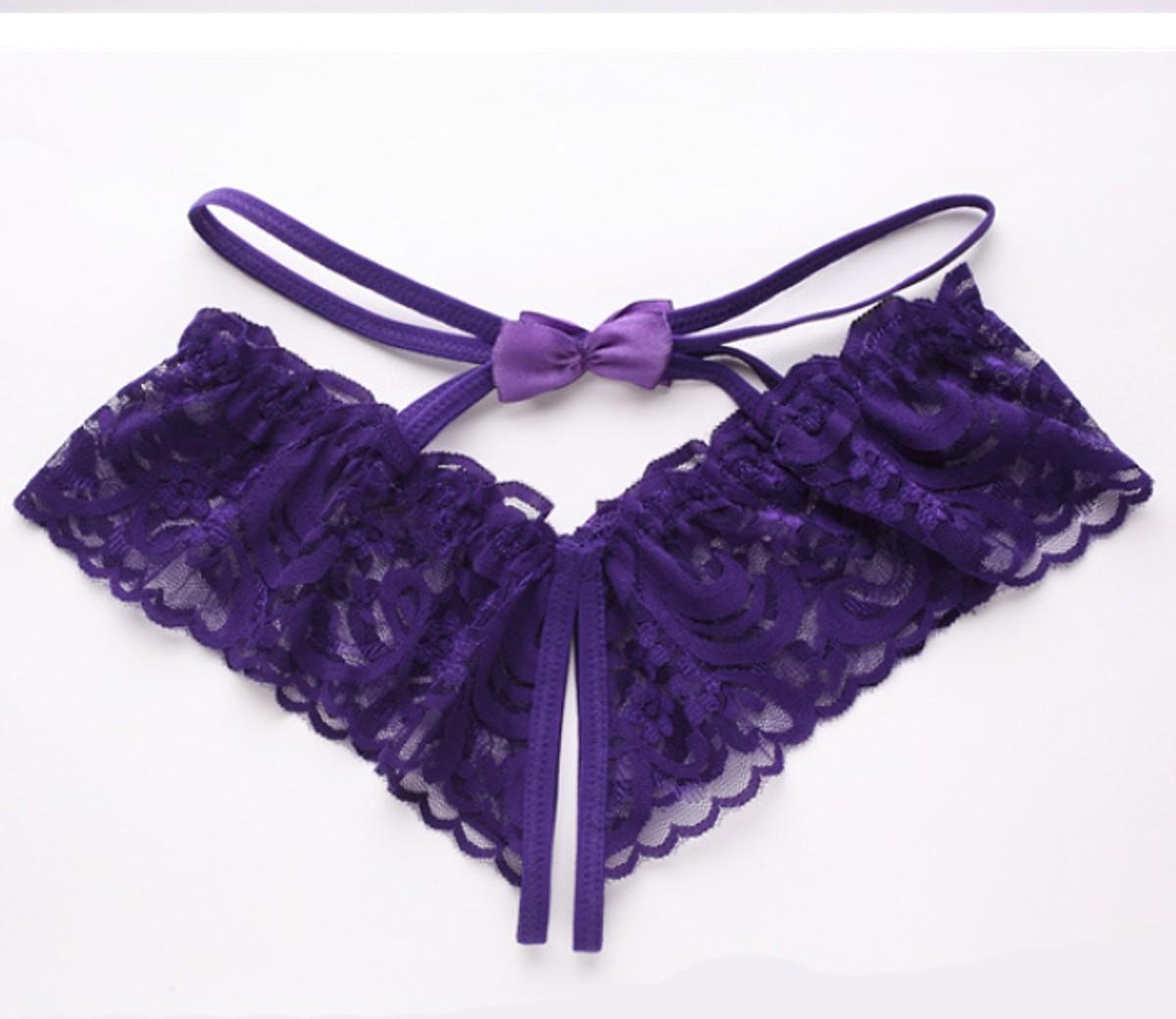 ✨Quần lót nữ ren hở mông dây chéo đính nơ tím gợi cảm