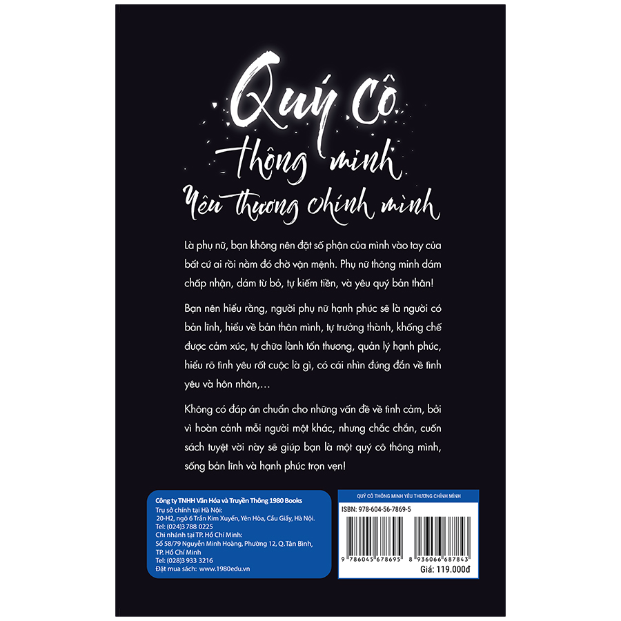 Cuốn sách “Quý cô thông minh yêu thương chính mình” là một cuốn sách tuyệt vời mà bất cứ cô gái nào cũng cần phải có để trở thành một quý cô thông minh, tìm được hạnh phúc, thành công trong tình yêu và cuộc sống.