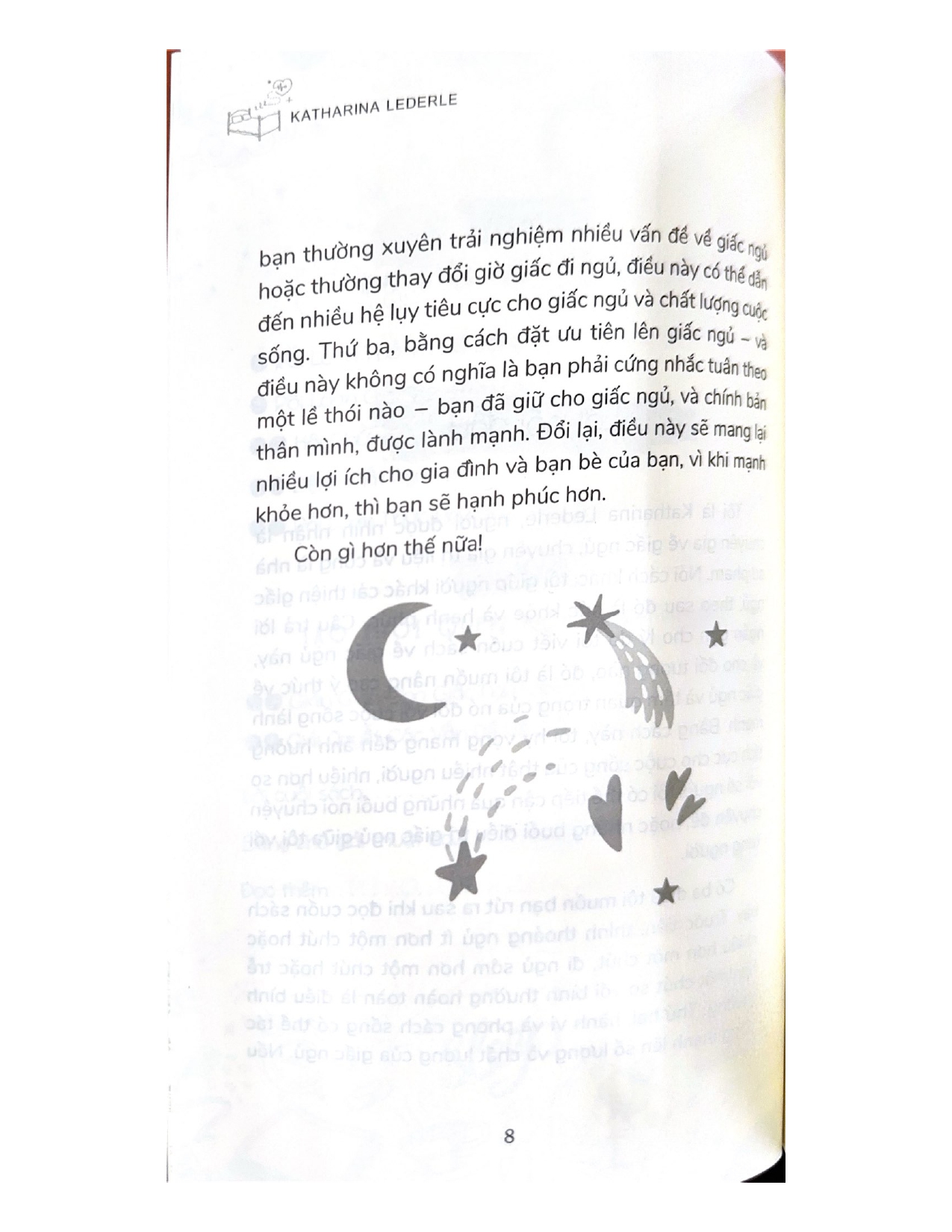 - Giới thiệu Quyền Năng Vô Hạn Của Giấc Ngủ Có lòng can đảm đối với những nỗi buồn lớn của cuộc sống và kiên nhẫn đối với những điều nhỏ nhặt và khi bạn đã hoàn thành công việc hàng ngày của mình một cách chăm chỉ, hãy đi ngủ trong yên bình. Victor Hugo Một cuốn sách rất thú vị! Từ quá trình nghiên cứu và kinh nghiệm làm việc, Katharina Lederle đã giải thích những kiến thức khoa học mới nhất về giấc ngủ, cũng như lý do tại sao giấc ngủ ngon lại quan trọng đối với sức khỏe và niềm hạnh phúc của chúng ta. Cách tiếp cận thực tế đầy thu hút này giúp việc đặt ưu tiên lên giấc ngủ và làm theo lời khuyên của bà trở nên dễ dàng – chúng là sự kết hợp giữa khoa học và thường thức. Tôi khuyên các bạn nên đọc nó!