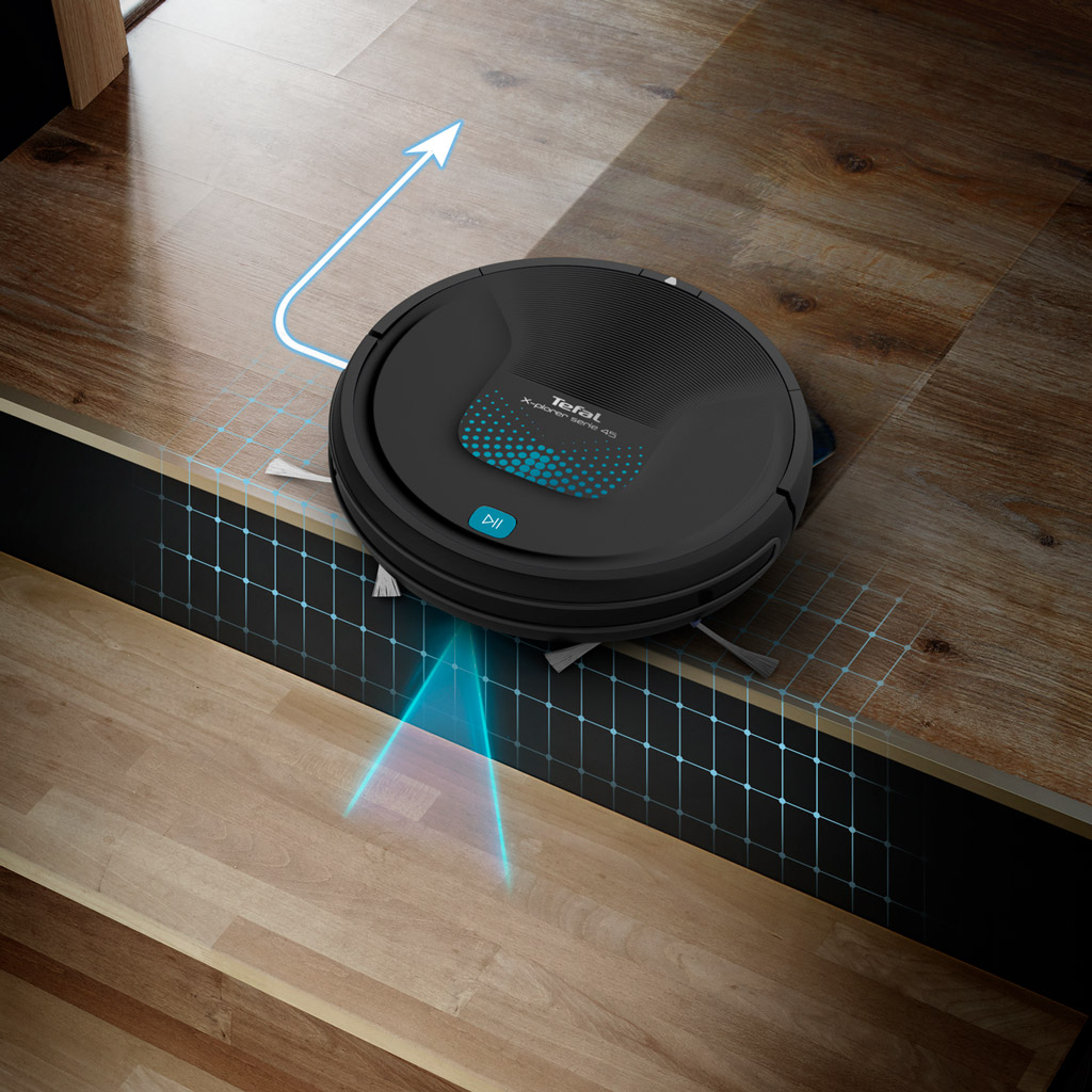 Giới thiệu sản phẩm Máy hút bụi Tefal Robot RG8275WH- Đen - Máy có thể hút liên tục lên đến 150 phút - Tự động sạc nhờ bộ sạc kèm theo - Cảm biến