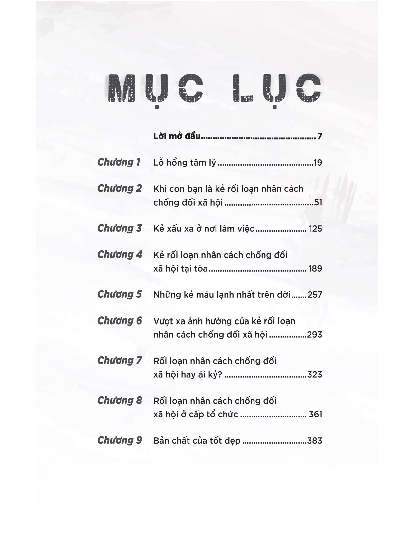 Ngoài ra, cuốn sách còn giúp bạn nhận ra một sự thật rằng: Những kẻ rối loạn nhân cách chống đối xã hội không còn là hình ảnh trừu tượng trong một bản tin tức hay chủ đề của một bộ phim tài liệu gây sốc; mà trông hệt như những người bình thường khác, được ngụy trang khéo léo đến mức gần như không ai có thể nhận ra bản chất thực sự của họ trong nhiều năm hoặc thậm chí nhiều thập kỷ.